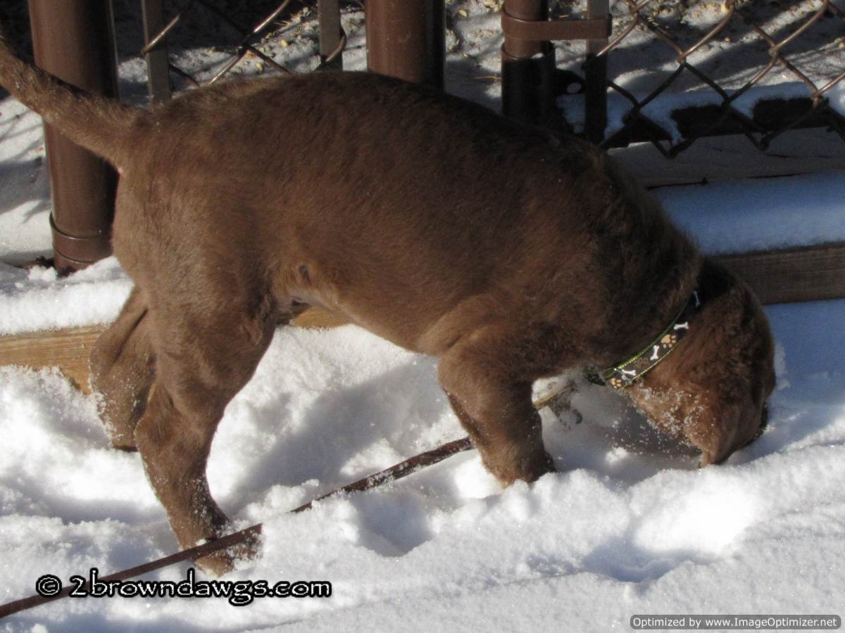 I took a picture of Sampson and his first snow…..it was falling and he was peeing. 🙂 Don’t worry Freighter, winter isn’t over yet. 🙂