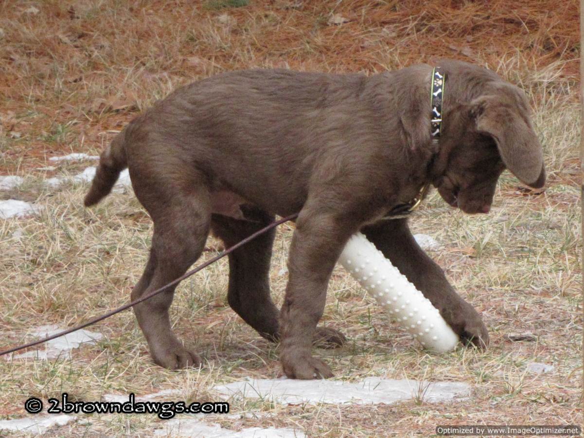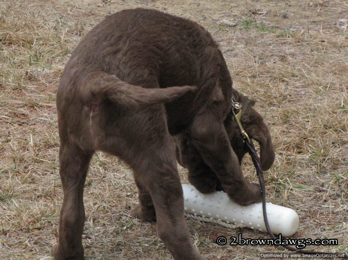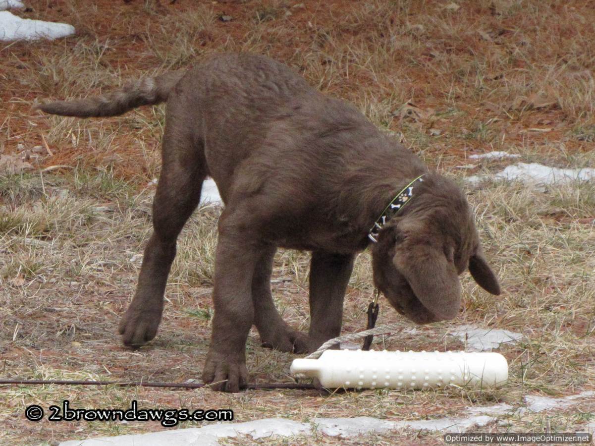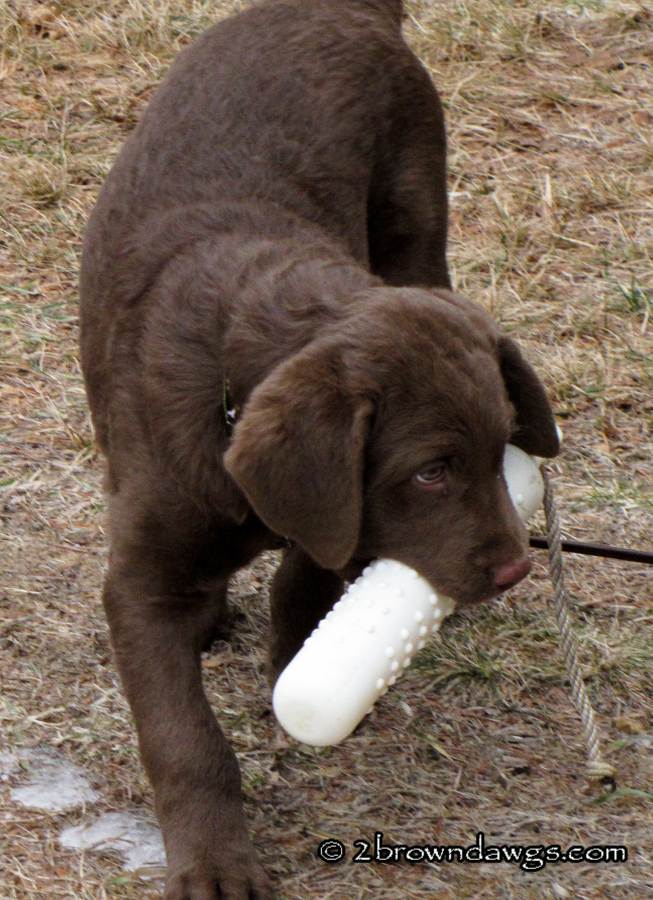 What a sweet boy– he really looks like he is taking to those bumpers! How great, a little retriever in the making 🙂