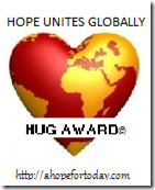 I also received the Hope Unites Globally Hug Award from Misty Shores Chesapeakes, here. Misty Shore’s Chessie pack has expanded by two recently and the new additions sure are cute. I hope to meet them in person soon. In the mean time I enjoy reading about their antics on their blog. You might like it too. We also received the Hug Award from dogdaz, here. Dogdaz claims to have a zoo. I don’t know if it is really a zoo, but it sure is a lot of fun. Go on over and say “hi”. In the spirit of the award “hugs” to both Misty Shores and Dogdaz!