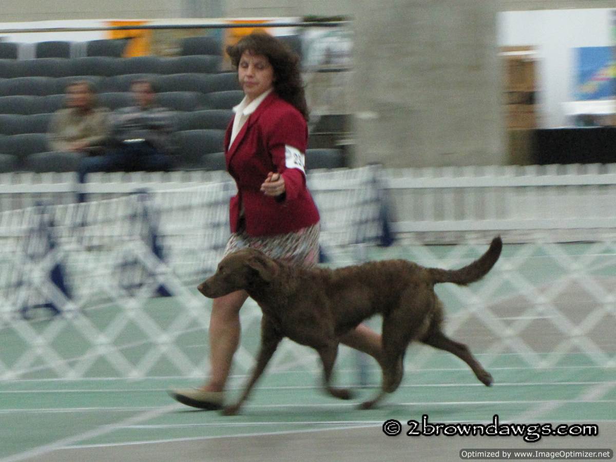 I took a few pictures. Again, my camera does not do well in the lighting at Cobo. Plus the ring the Chessies had required us to sit quite far away from the dogs. I have found that using my zoom in the Cobo lighting also makes for blurry pictures. As a result, many of my pictures were not very good. Sorry.