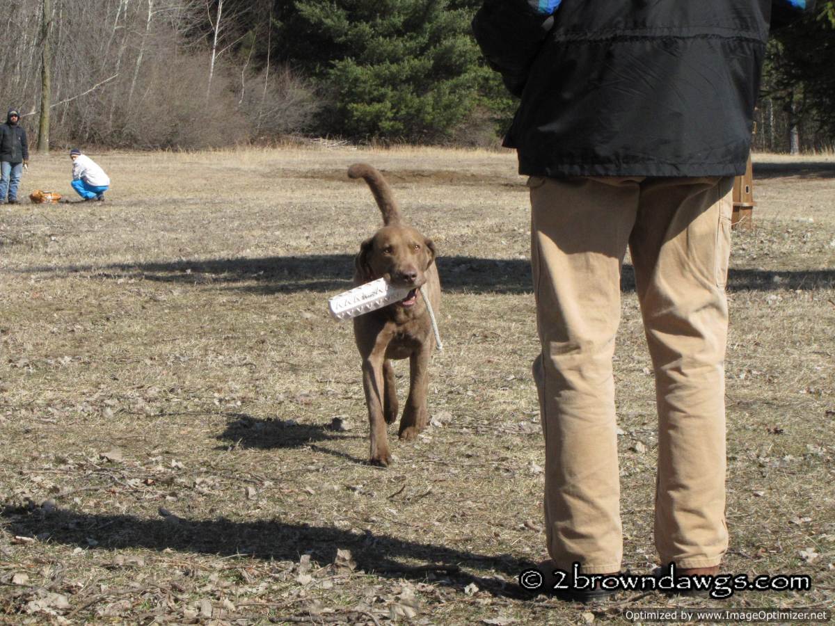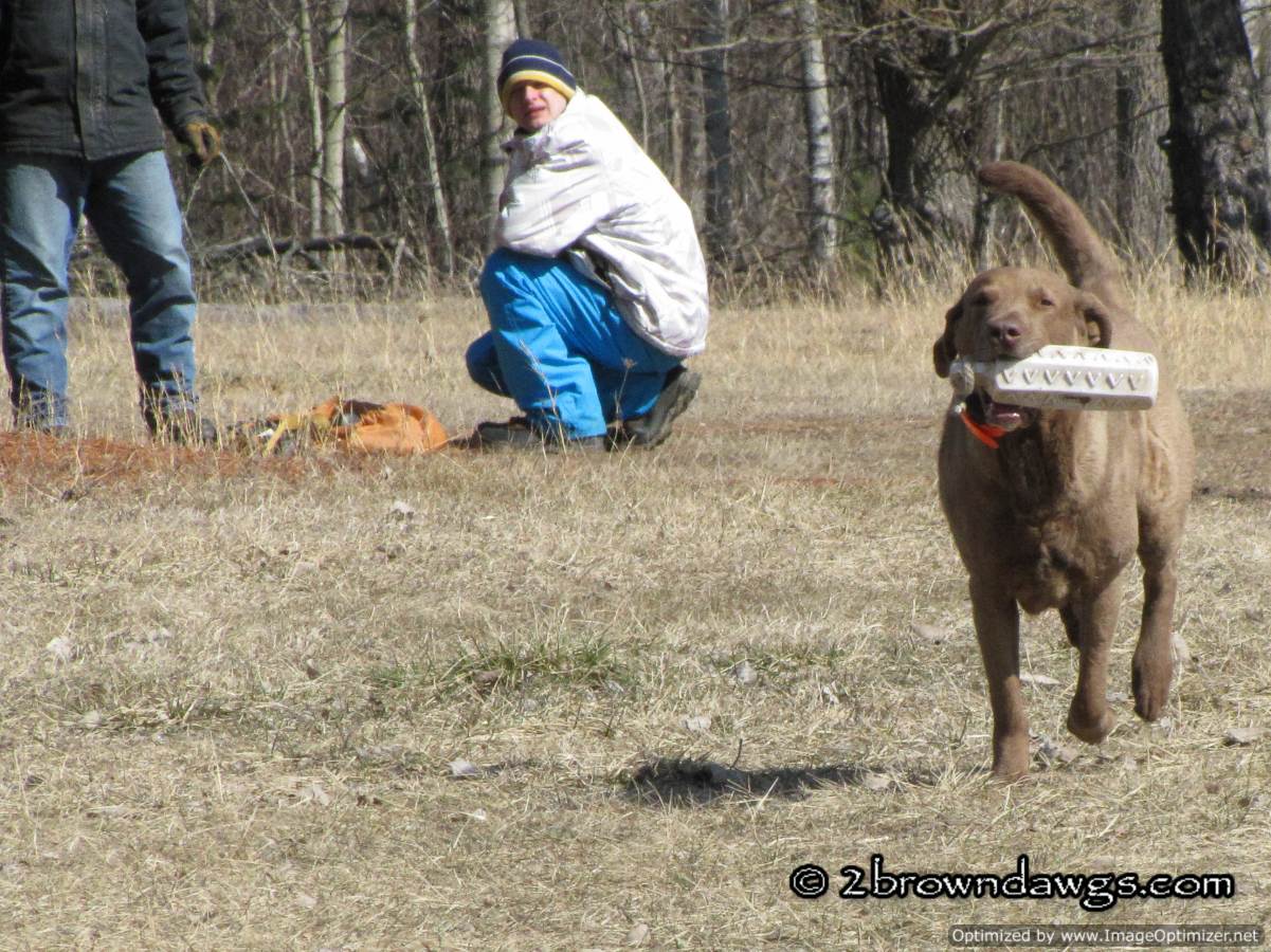 Looks like a great day for chessies all around. I assume bird boys are bumper boys? Freighter looks quite cool and collected for a pup, nice job.