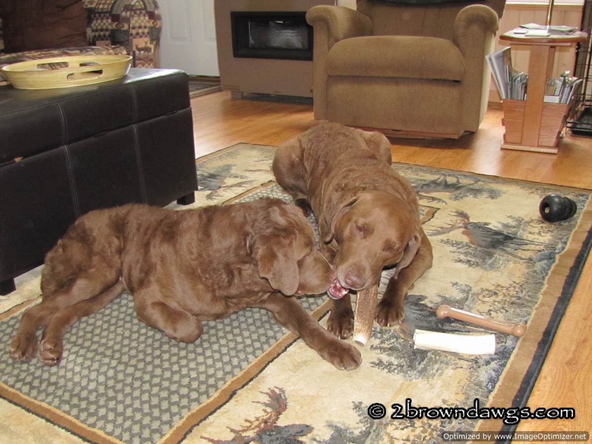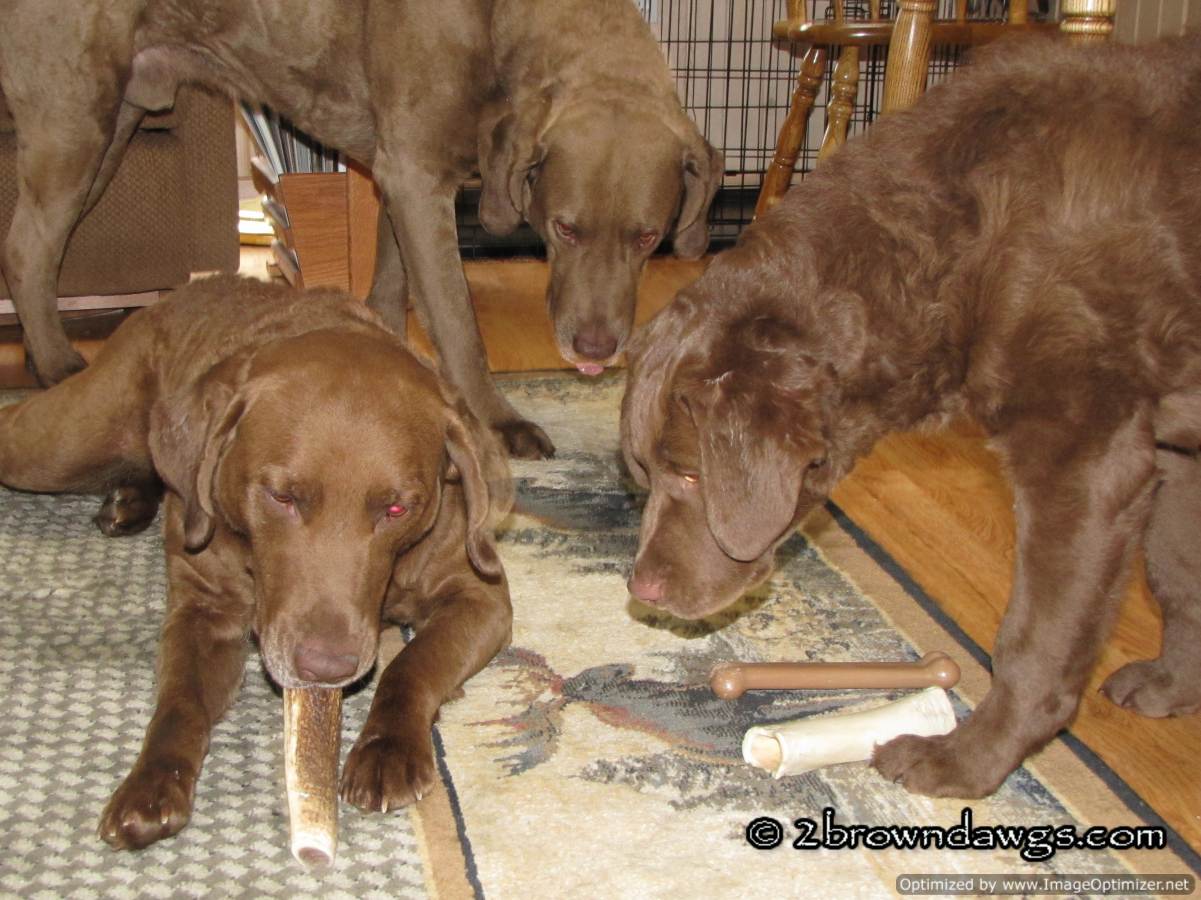 Storm really was being a little hoarder! Isn’t there a reality show for that now. lol! Looks like she was partial to the antler. I love the way Thunder’s tongue is sticking out in the one pic!