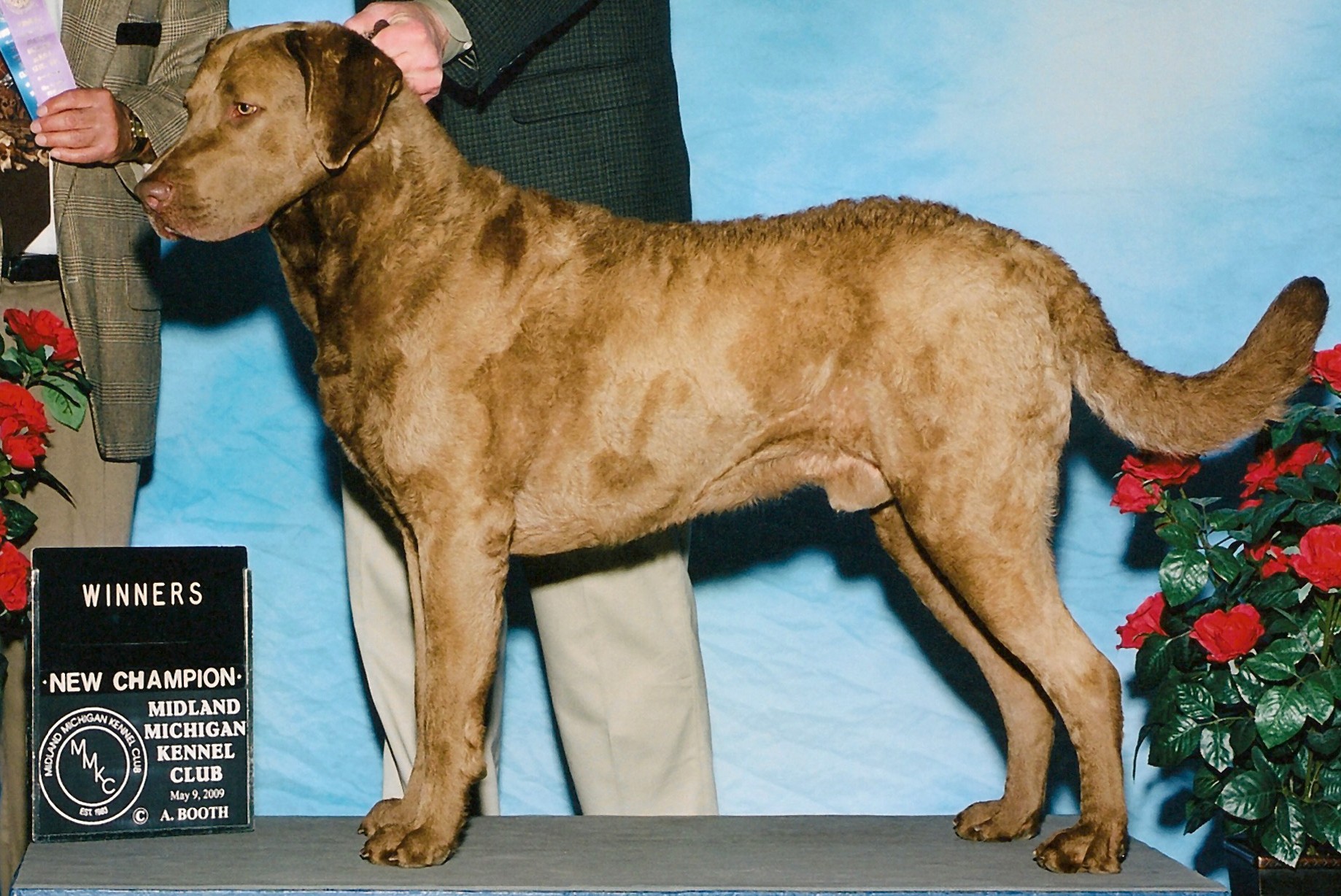 Every AKC breed has a written standard that describes the characteristics of the breed. These characteristics include such things as appearance, movement and temperament. The standard for the Chesapeake Bay Retriever can be found here. Some people mistakenly think that at a dog show, the dogs are judged against each other. That is not exactly true. Dogs are judged against the standard for their breed. The judge’s job, whether judging breed, group or best in show, is to select the dog that most closely matches the written standard for its breed. That is not to say that politics do not enter into the selection. Sadly at times they do. It can be a challenge for a novice handler to beat a pro in the ring, but luckily in our breed it is still possible. That is not the case in every breed.