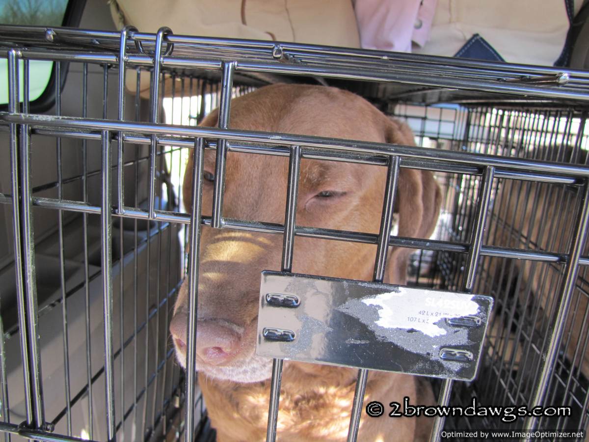 The cerf clinic was at a dog show and there were people and dogs everywhere. We did not take Freighter into the show because it was so crowded inside. Freighter had fun hanging with me in the parking lot while hubby took both dogs in for their exams. The way it usually works, you pay the fee and get the paperwork and they put the drops in the dogs’ eyes to dilate them. Then you wait for the drops to work while you fill out the paperwork. We did it a little differently because hubby paid the fee, got the paperwork which he brought back to the car so I could help him fill it out. He then he took both dogs with the completed paperwork and got the drops put in their eyes. They had to wait in line at least 20 minutes to let the drops work. Once their eyes were dilated, it was a quick test by a veterinary ophthalmologist and voila done. Both of our dogs had normal tests. 🙂