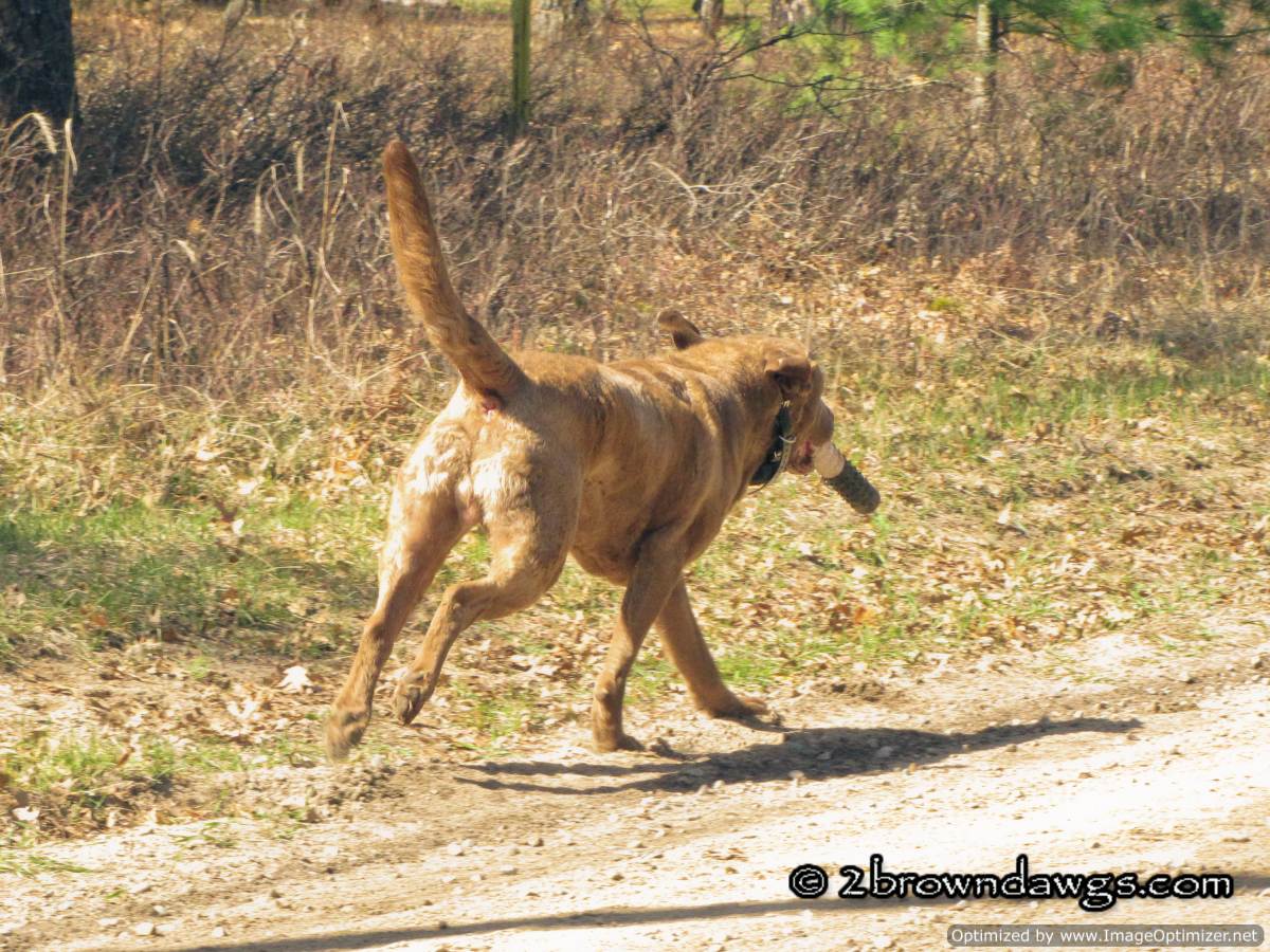 This post is a continuation of the training we did last Sunday. After we finished working with Freighter, it was Thunder’s turn. We decided to run some long singles along side of the road. As you may have seen from the other video, there are a lot of trees around and it is really the only place to throw bumpers where they do not hit some overhead branches. We also are trying to stretch out Thunder’s marks because the next level tests will have long marks. We would have liked to throw double marks for Thunder, but there wasn’t enough room. We ran him diagonally across the road and I threw the bumper in the cover on the side of the road. It was getting windier as we were training. The wind was starting to swirl which made it more of a challenge for the dog to locate the bumper in the cover.
