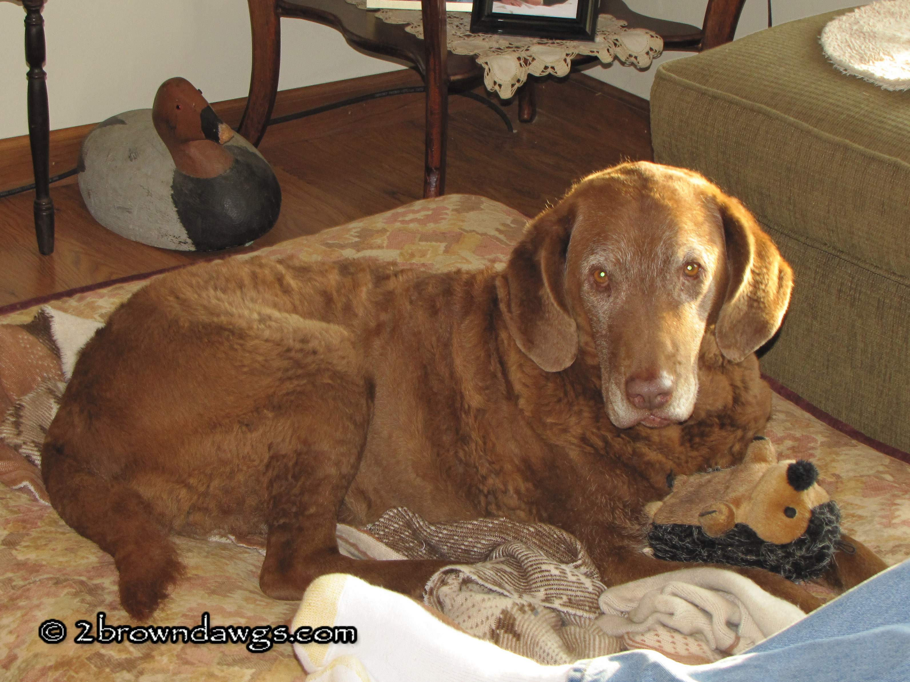It is such a hard chore to say good-bye to a loved family member that only is with us for such a very short time. Although the time may pass by so quickly, there are so many memories that are placed in our hearts that will remain with us forever. The first time you held the little good smelling ball of fur to your cheek, and did not want to put it down. The day that the light bulb came on and the Chessie put two and two together and realized what his or her existence was centered around. That first retrieve… So many heartfelt moments. I pray that you will always remember the good times and love that Dakota brought you, and find solace when you think of her.