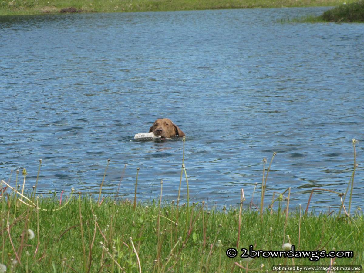 For some reason the kid throwing the bumpers changed it up and threw the mark a bit shorter for Storm. She is not always keen on super long swims, so she lucked out. She did a nice job on this mark.