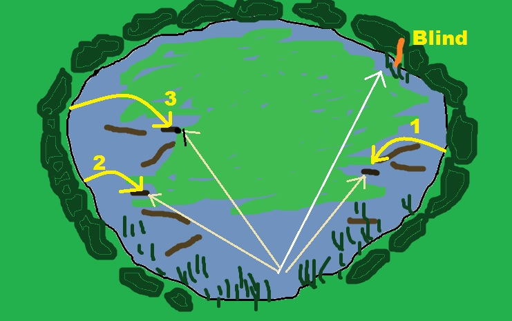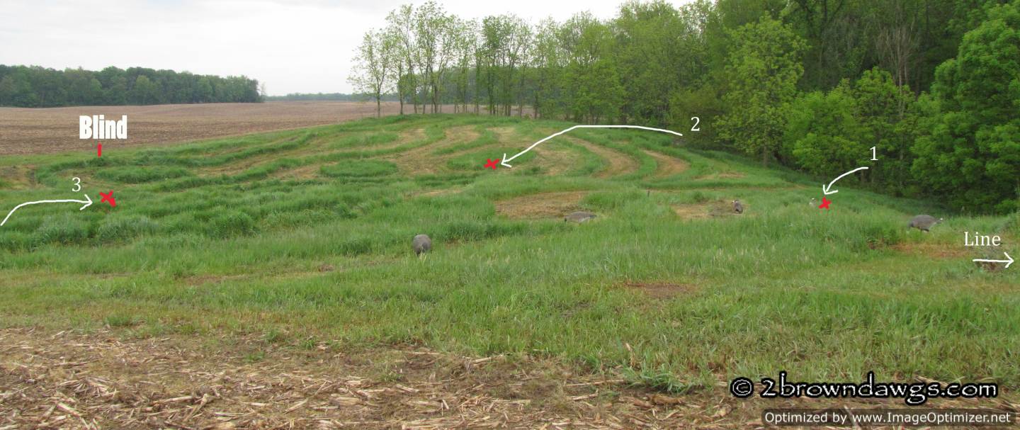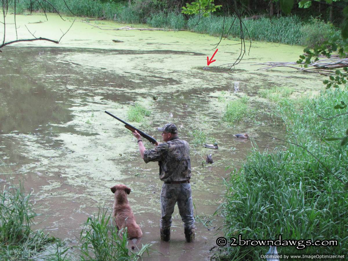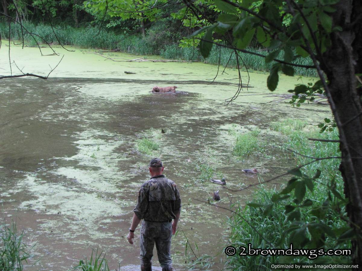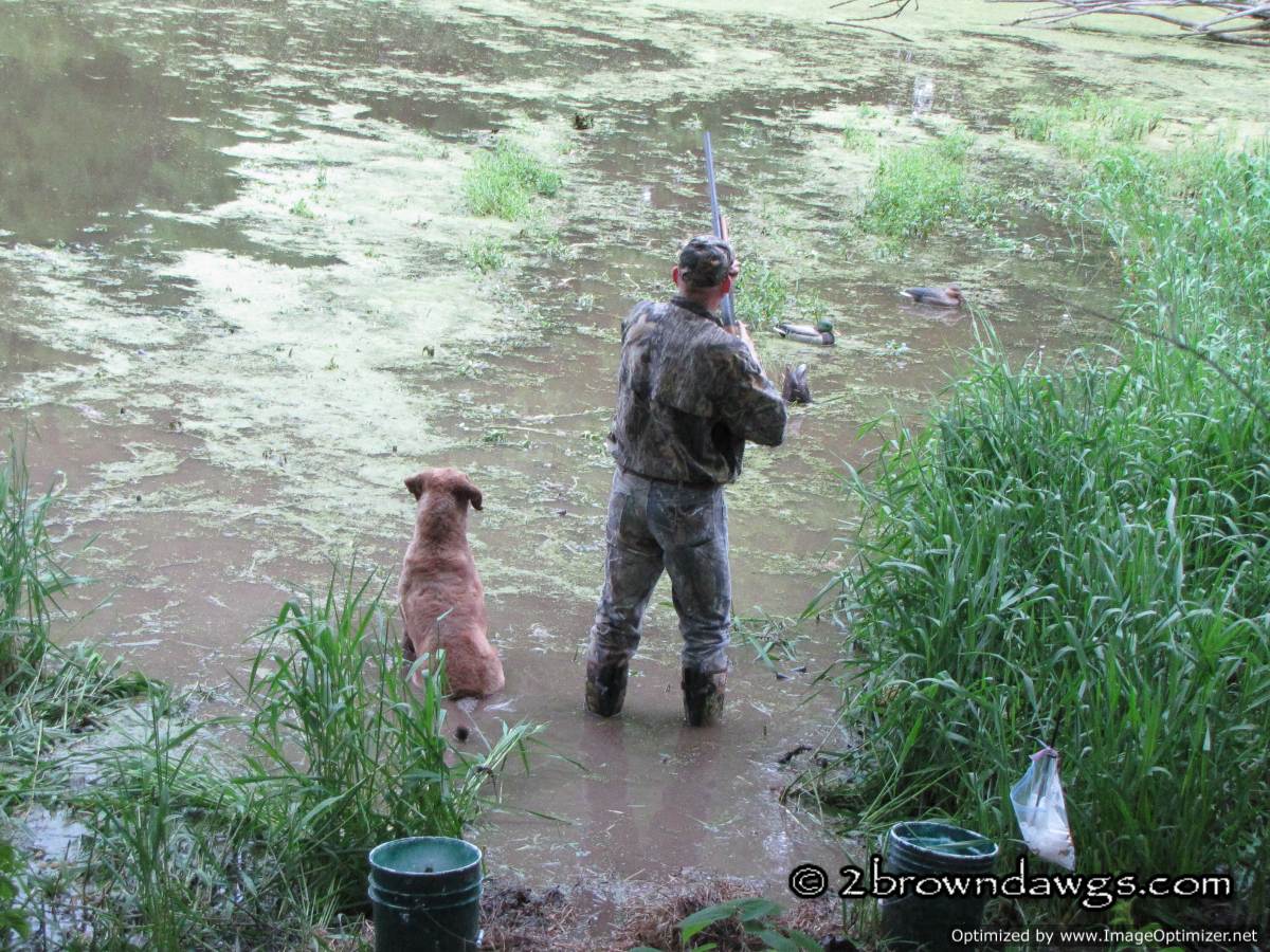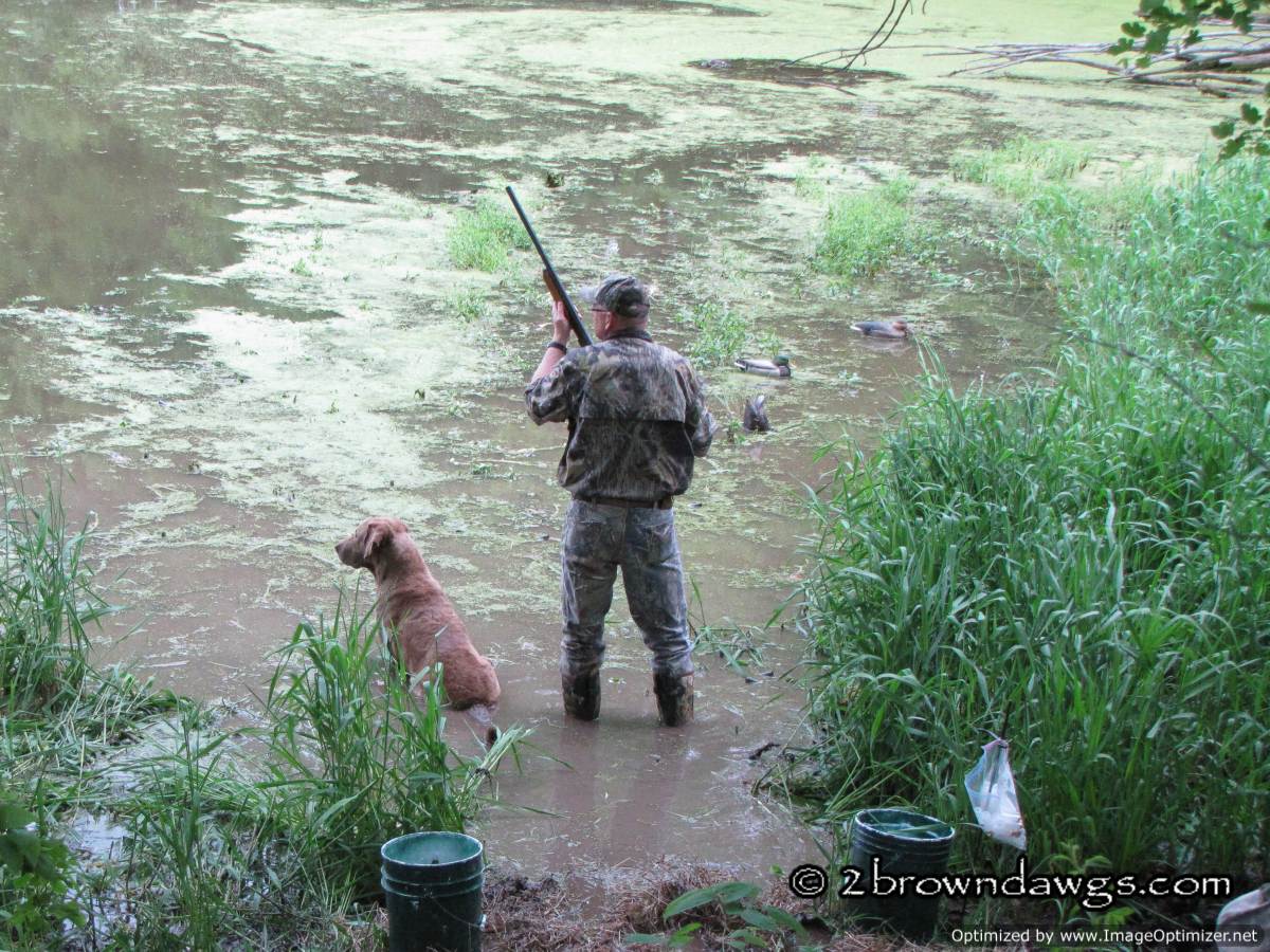 Thunder was sent to pick up mark #3 (go bird) first. He went straight to the area and hunted in the tall grass, but did not come up with the bird. He tried to play the wind and unfortunately got too far right of that bird. Once he did that he picked up the drag back scent (the path the dogs had been dragging the ducks back from the blind) and it was like a super highway that lead him right to that hot blind and he picked that bird up. An automatic DQ. It was ugly. A couple of other dogs did the same thing. The blind was kind of close, but not unreasonably so.