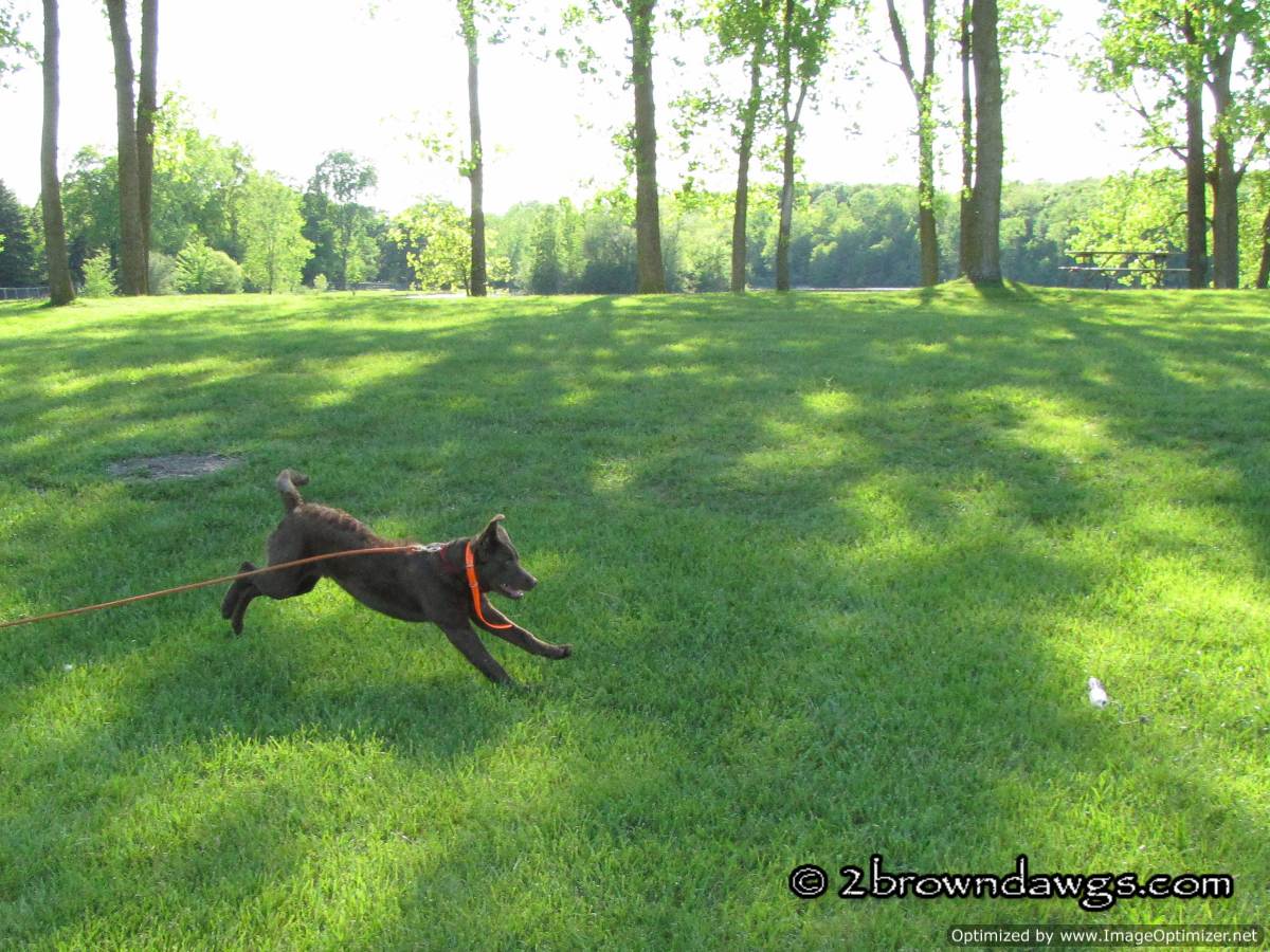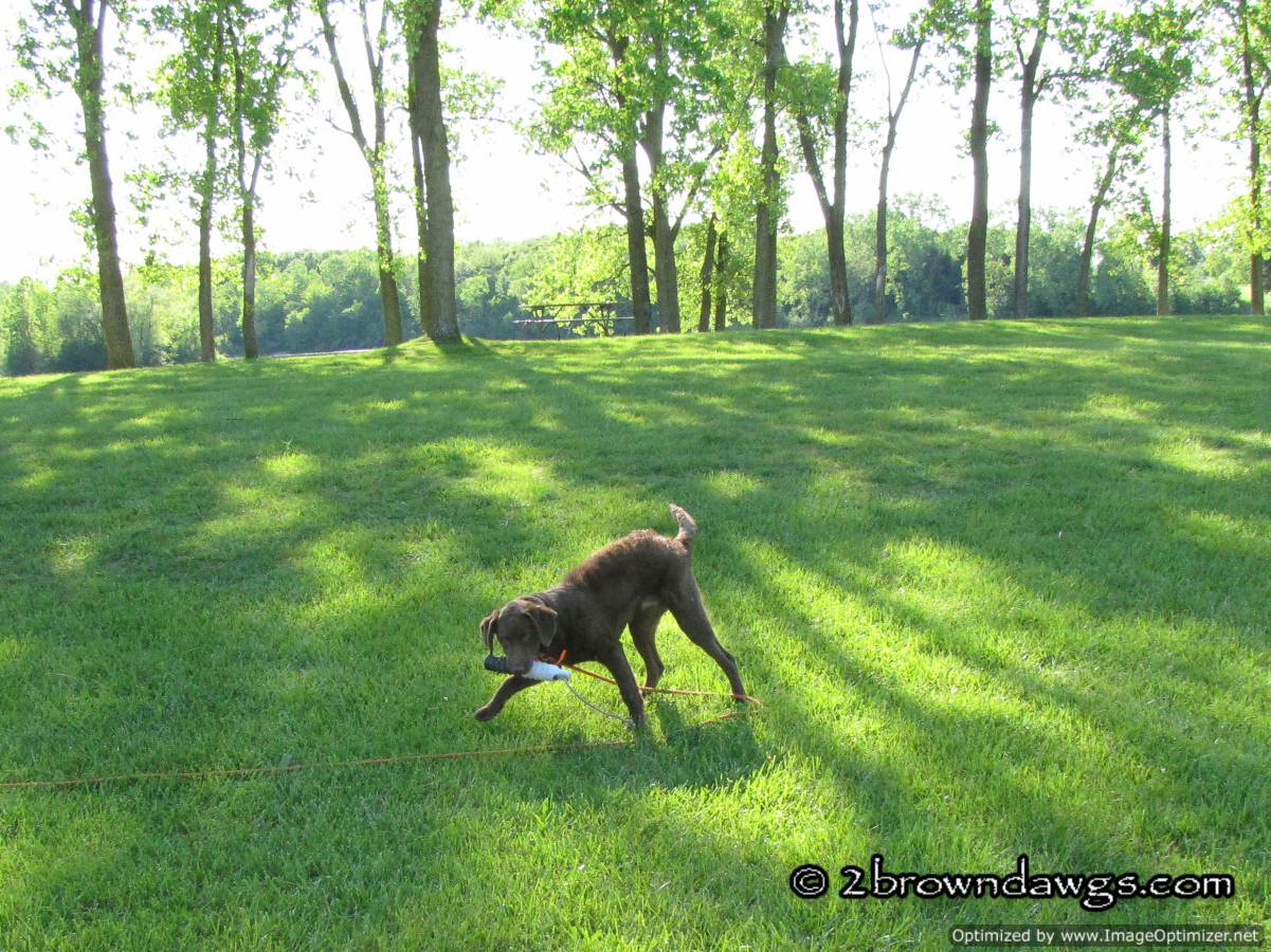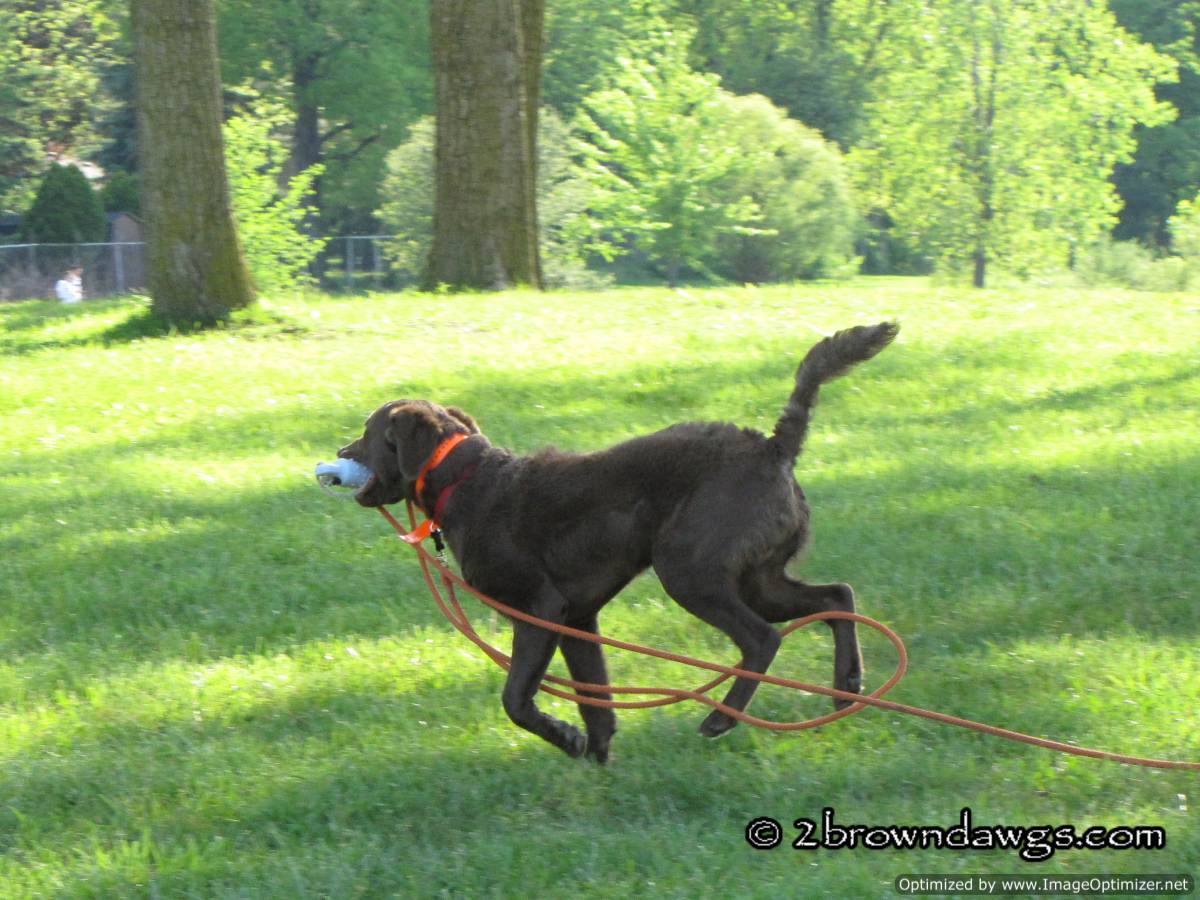 Did you notice that sometimes Freighter tries to “fetch” that lead? lol puppies!