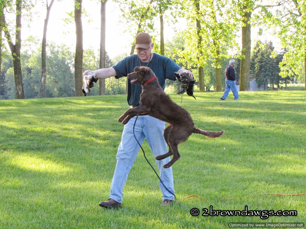 This is EXACTLY how we train “here” in the field. We always end with a single retrieve – a hat, bumper, bird, whatever to keep it fun, but I must say Freighter looks like he’s having a great times as it is :-). As you know, we reinforce here with other games like what I’ve described before: