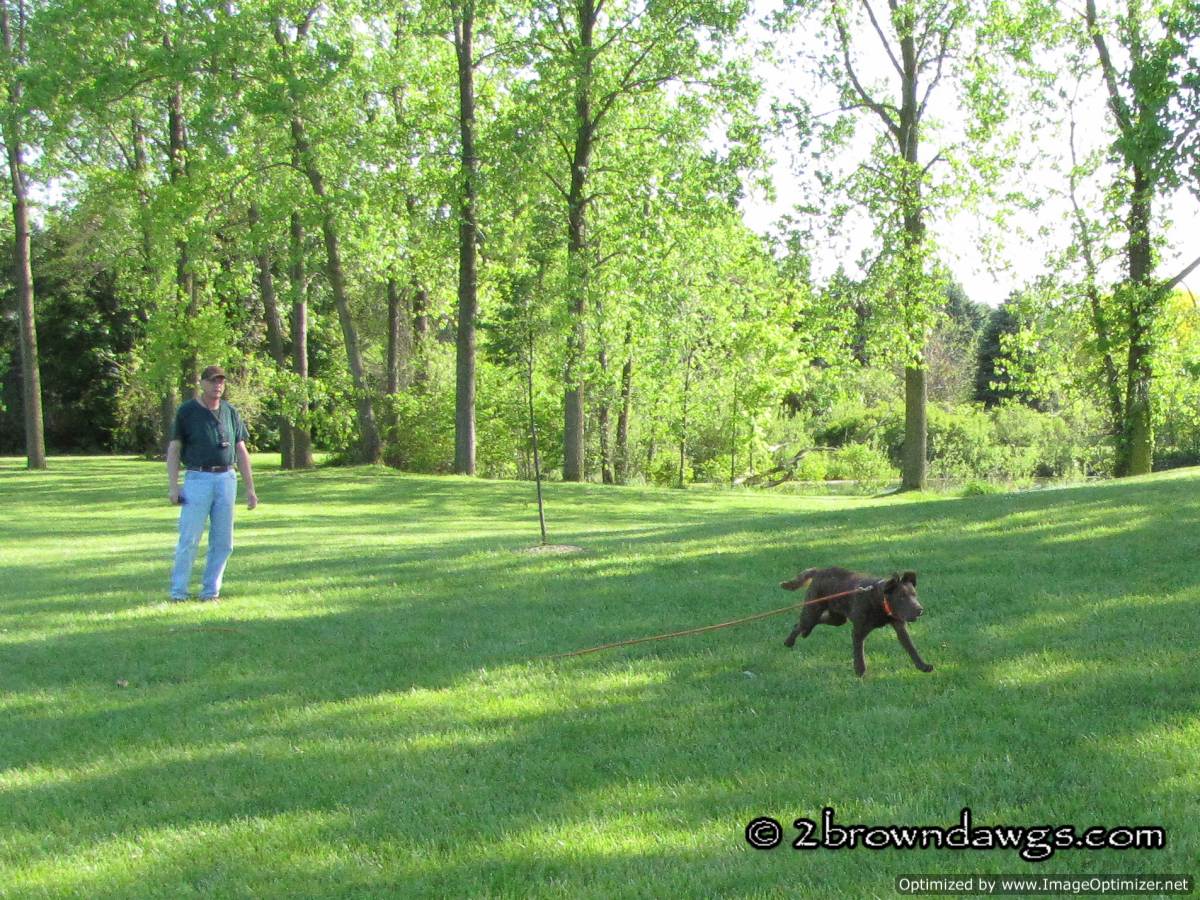 Yay!! The video worked on my home computer!! It looks like Freighter is getting the hang of ‘here.’ I do notice his handler is doing the jumping rope thing I do with that dang long leash. 🙂