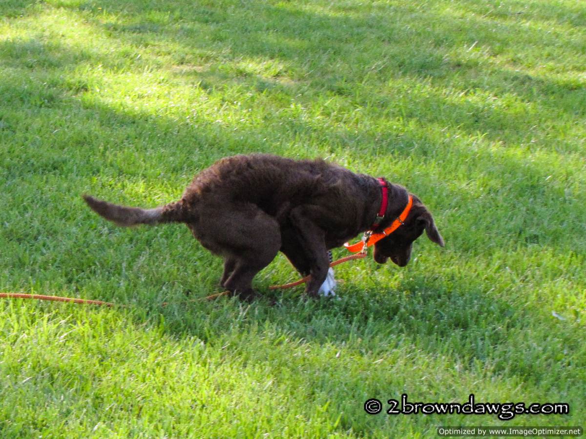 Freighter’s retrieving is coming along. He is super excited going to the bumpers, but still may take a detour on the way back, although he is getting more consistent about bringing it close to his handler. Hopefully he is putting the obedience work together with the retrieving work in his own head.