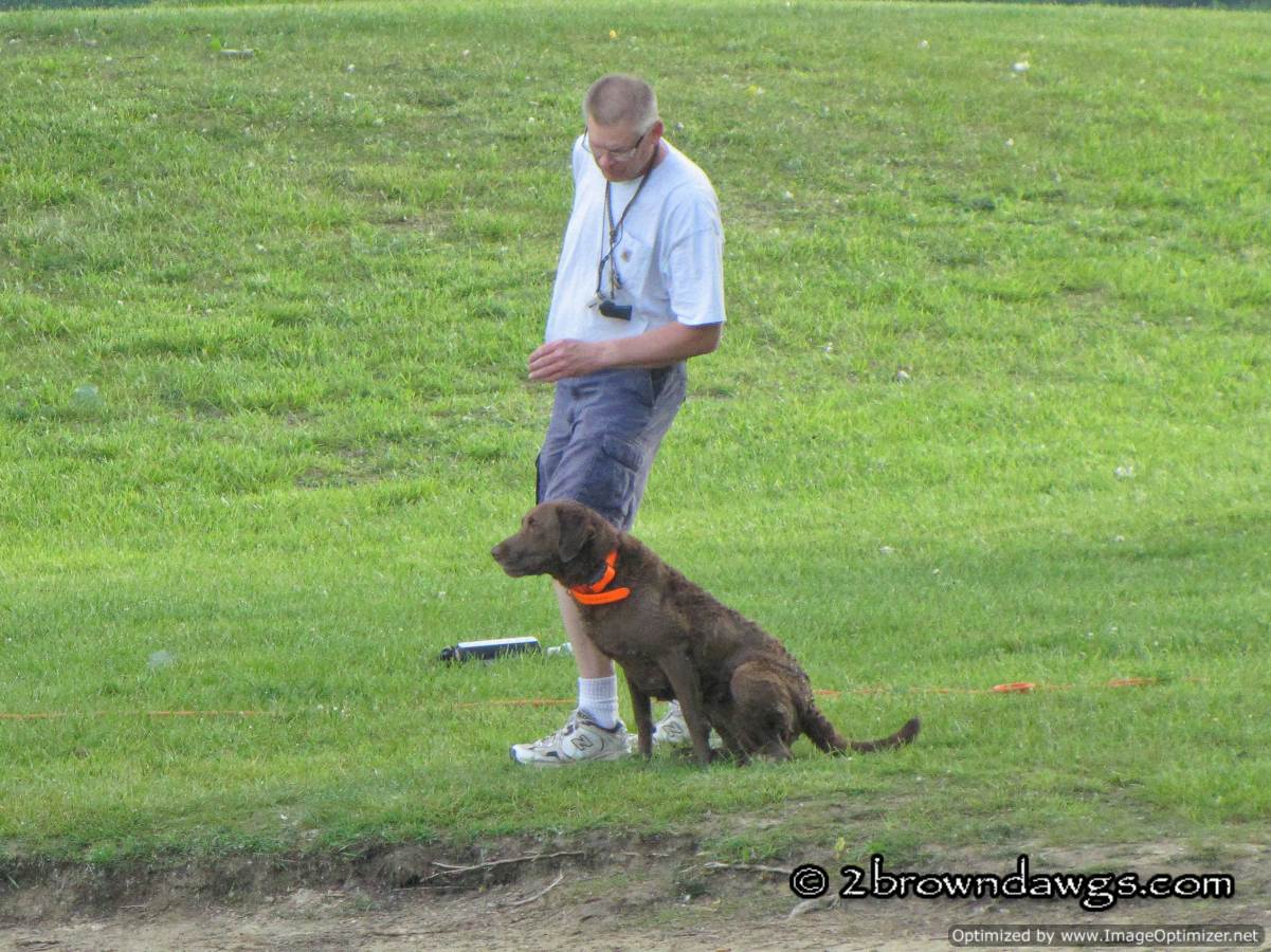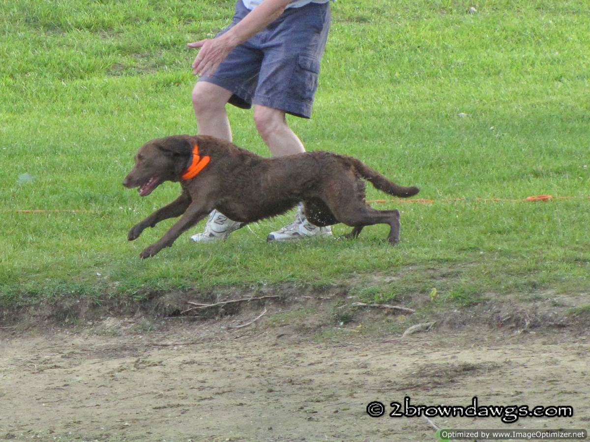 We had a heat wave over the holiday weekend so on Monday we ventured out early to train. Thunder got a pass because he was out in the heat all day Sunday running for his first Finished pass. The little lake we train in is often crowded with people fishing, but we were happy to see there were few people there that morning so we set up on the water first.