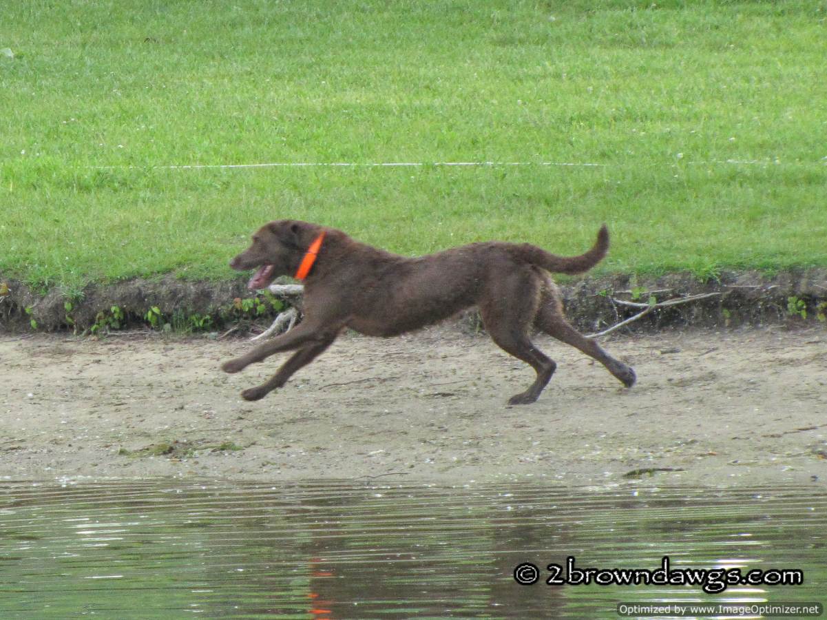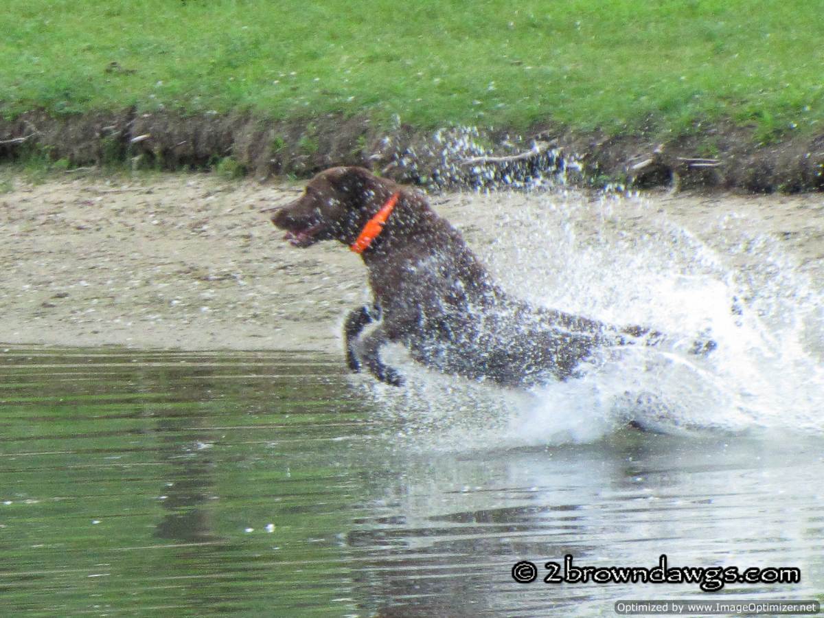 We are somewhat limited with what we can set up on this water because of the way the lake is configured. All bumpers have to be thrown into the water due to the large shrubs which ring the edge of the lake. On this water, we can’t really train an in-and-out where we throw a bumper on land and have the dog swim and exit the water to get the bumper. Luckily there is another pond where we can train in-and-outs as long as no one else is using that pond for fishing or to run remote-controlled boats. When you have to use parks, you just have to adjust sometimes.