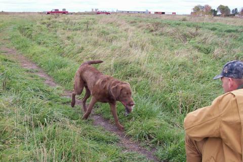 With Thunder and Storm, we did not work with a trainer when they were very young. In fact, we had no thought to run hunt tests until Thunder was 16 months old. He had basic gun dog training which was great because it involved flushing birds in the field. However, that was in preparation for hunting and not so much for hunt testing. He missed out learning some basic skills when he was young which is the best time to teach them. To this day, we still work with him on his holding the birds. It is something that has always been an issue for him at tests and I think it is partly because he was not put through formal retriever basics as a puppy.