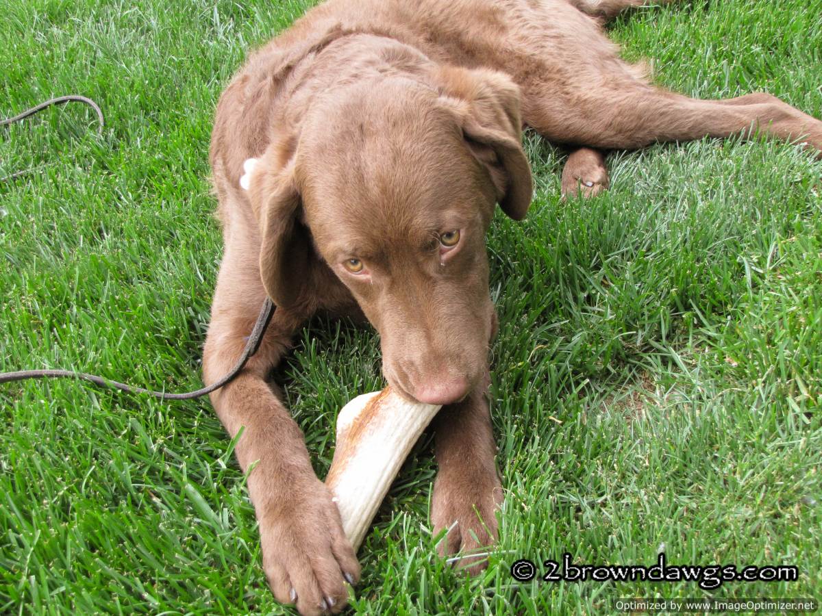 Wow! Antlers to chew on!? That is very cool! Looking so grown up from the very first Nylabone you won when you guessed the snowfall,Freighter!