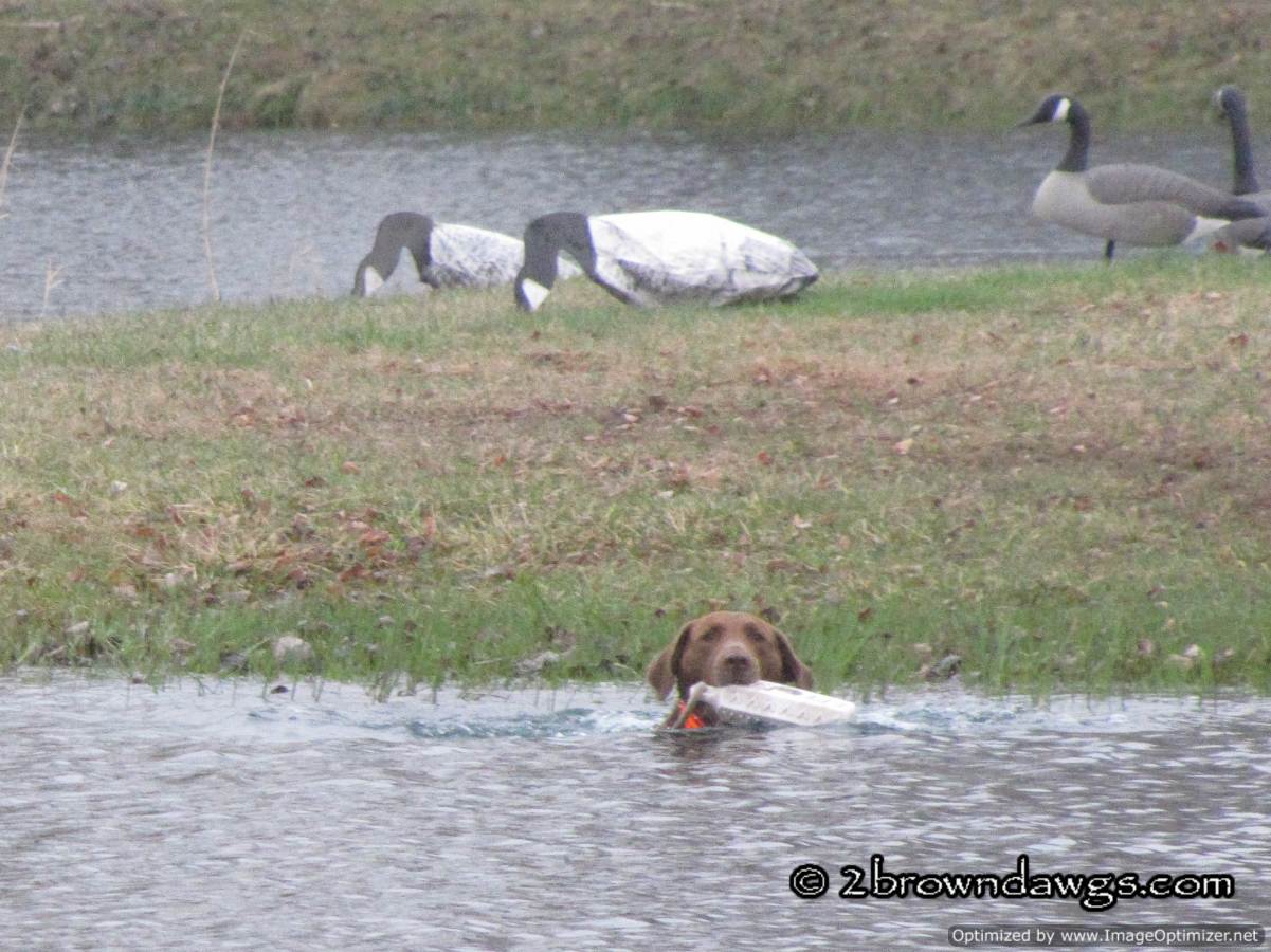 I’ve never hunted much over decoys so I’ve never trained my guys on them, which I’m going to do this year. The one time I took Dakota hunting over decoys, she kept retrieving them for me.