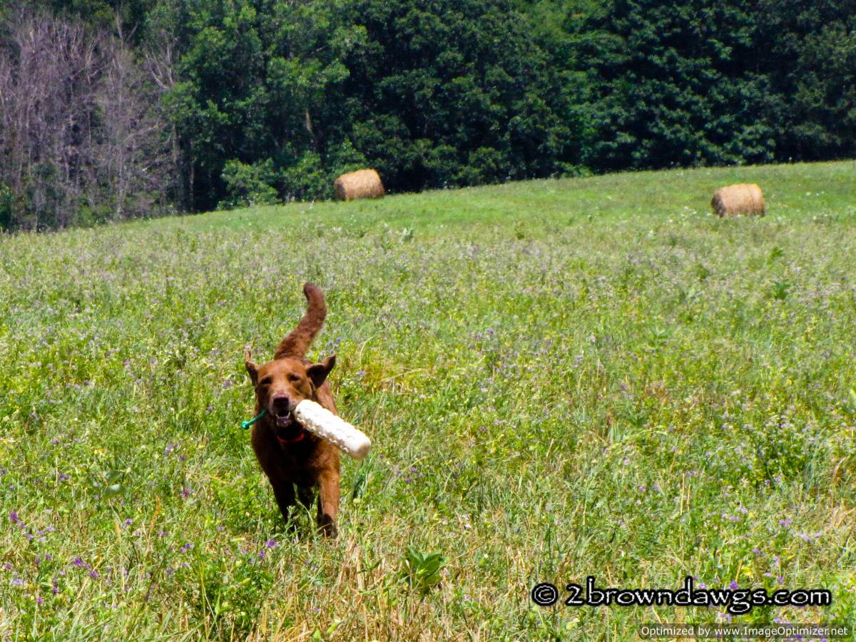 Thunder seems to have a harder time in the heat just because of his size. They are both in fairly good condition, but the heat can still get to them. We have been doing a lot of water work this summer. They are both fairly solid in the water and a bit shaky on land because of it. If we train land then we really shorten the marks and don’t repeat. We don’t stay out long. This is going to be another tough week!