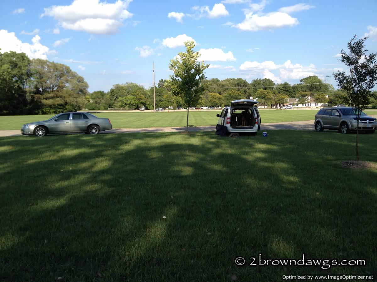 We usually try to park in shade near where we are training and usually try to find a shady spot to train if we are working land. The designated parking area at this park is mostly sun this time of year.