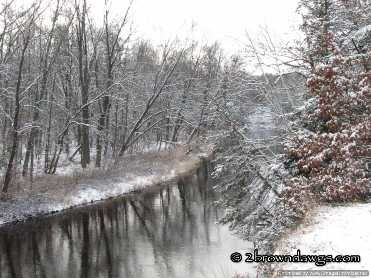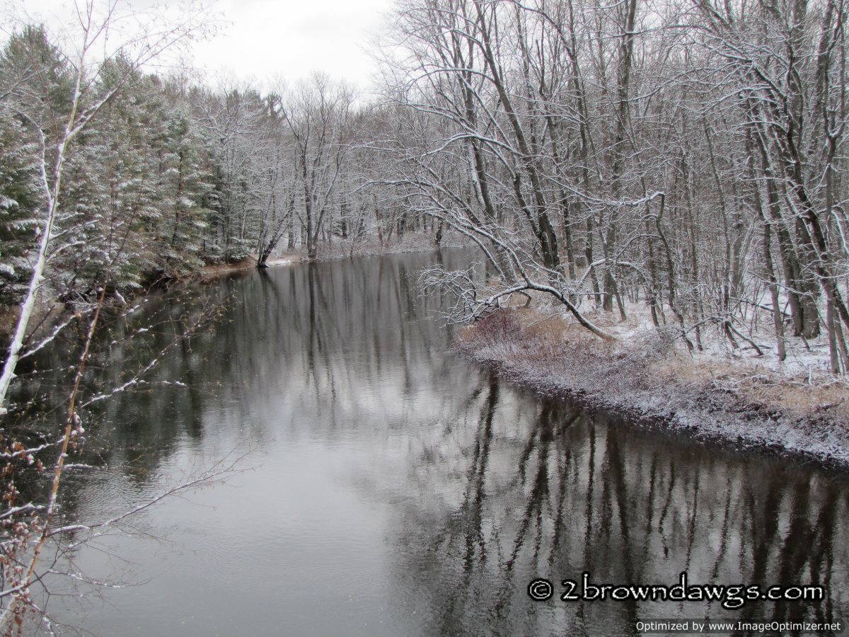 Saturday we took Freighter on a long walk in an attempt to tire him out. We ended up at the river which was beautiful with the new fallen snow.