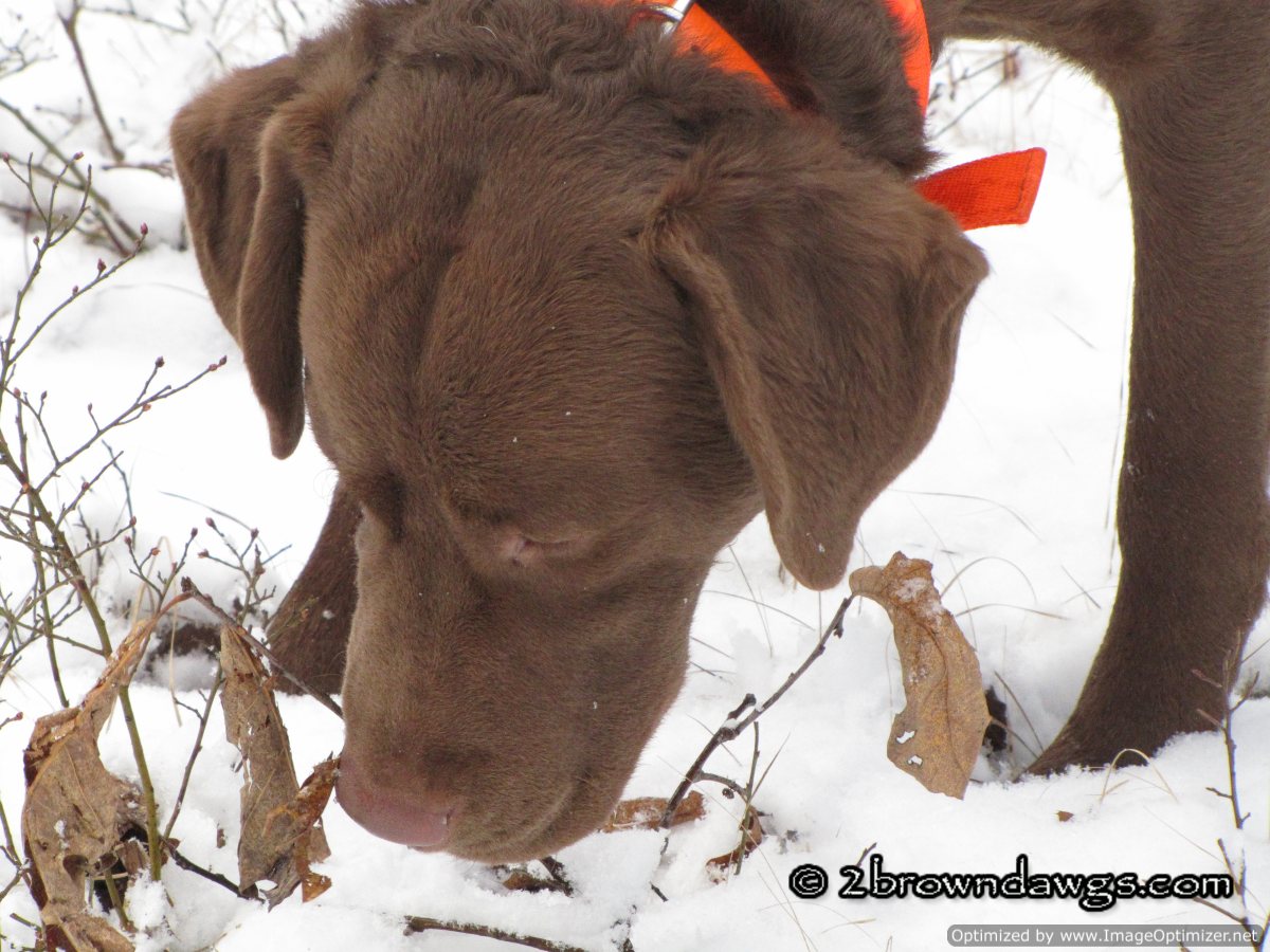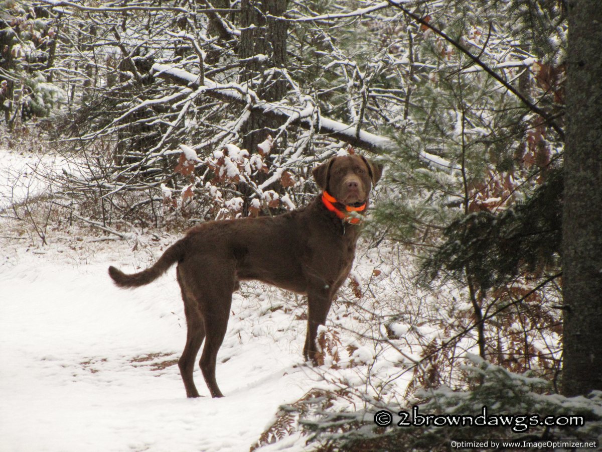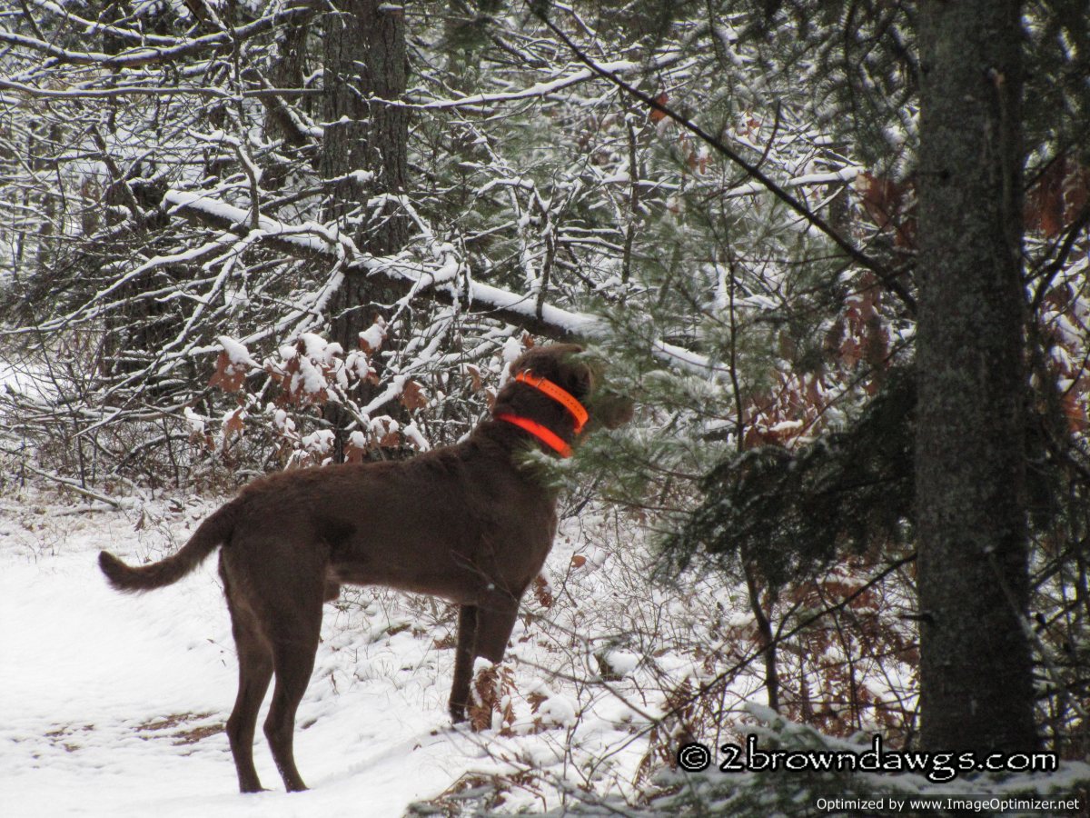 At this point Freighter was getting pretty far in the thick cover so he was re-called. He didn’t come right away and since we did not want him to get himself into trouble or lost, he got a little nick on his e-collar. He is a smart dog. He came right back.