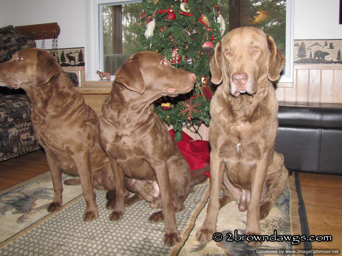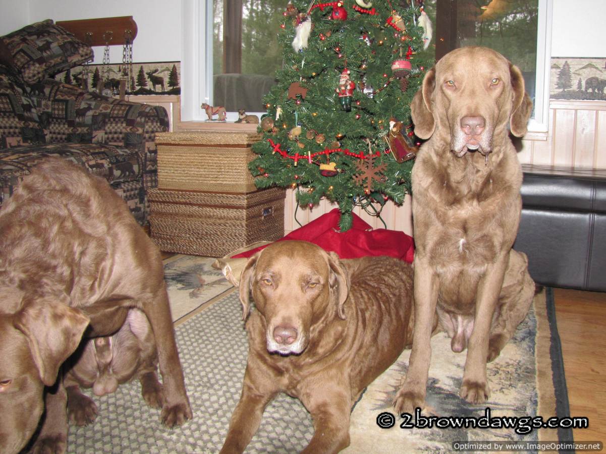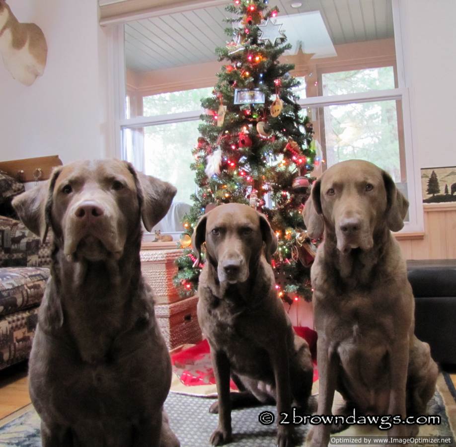 I tried to get a few pictures of the brown dawgs in front of the Christmas tree. I don’t know what I was thinking. I was alone and the space was small. Getting three dogs, one a year old, to sit next to each other in a small space is not something I would recommend if you want decent pictures.