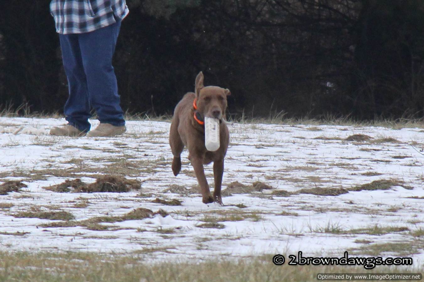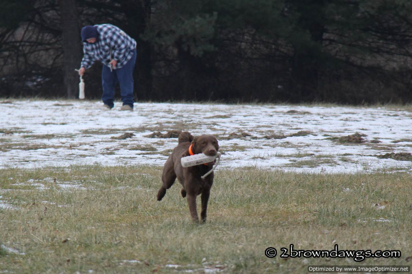 The double was a bit more of a challenge for Freighter. He has been doing doubles for us, but generally we don’t have two people in the field throwing the marks. Usually we have a winger in addition to a hand thrown mark. He was a bit preoccupied by the throwers, but with more practice at this, he will get it. So much of training is about exposing the dogs to different scenarios so they can learn.