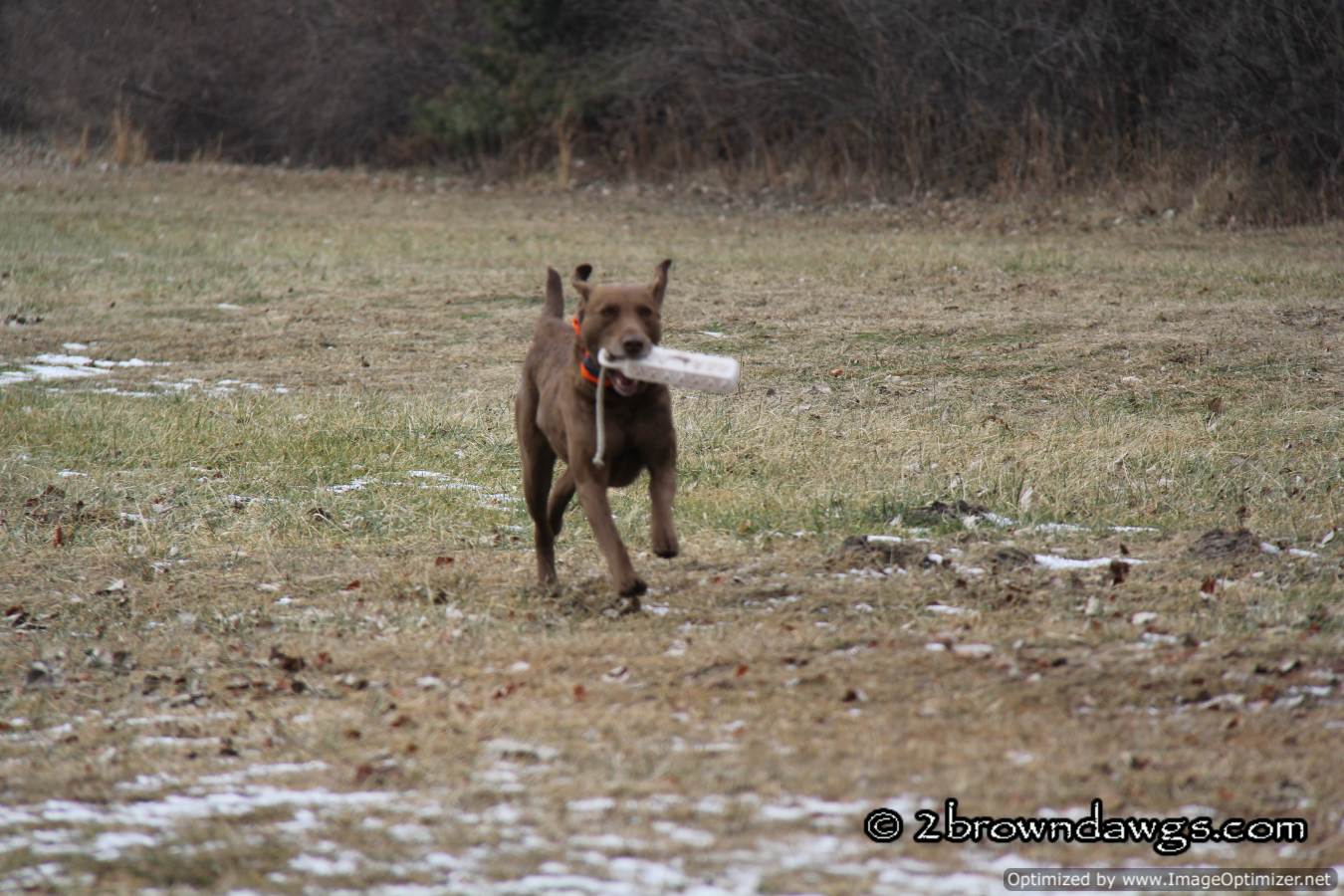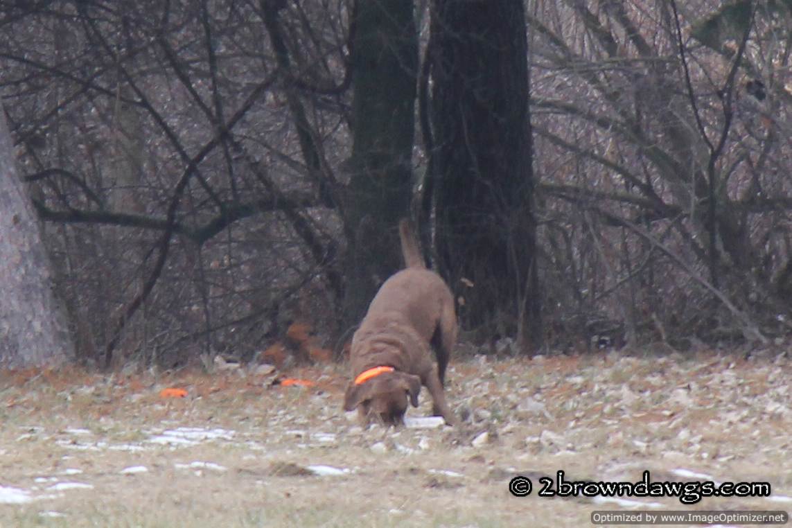 We also decided to run Freighter on some marks too. He was a bit rusty on the first single. It was long (100 yards or so) and thrown to the corner of the field. He put on a hunt and didn’t come up with it so he needed help. The second single he marked quite well. Maybe he was paying more attention? 🙂 He was also steady for the singles which was nice to see.