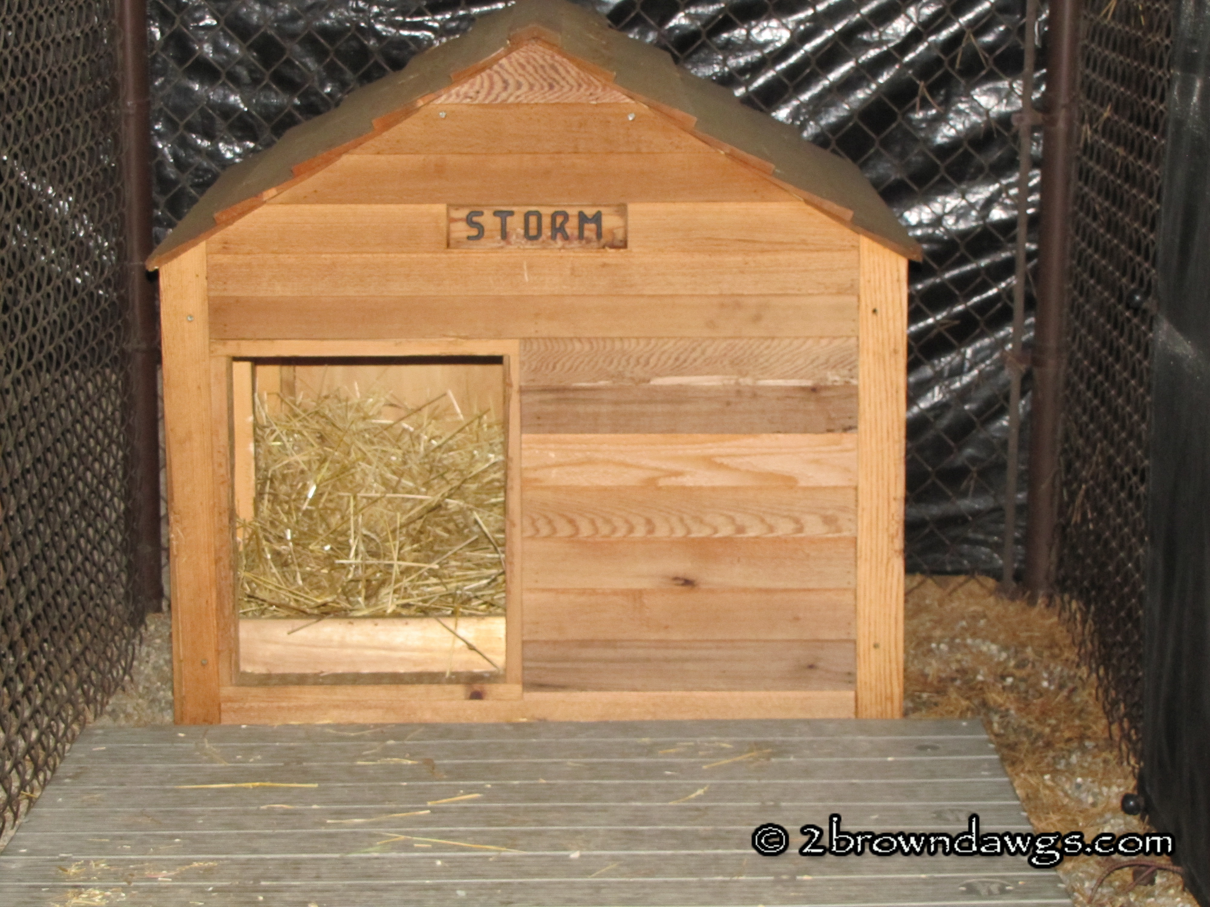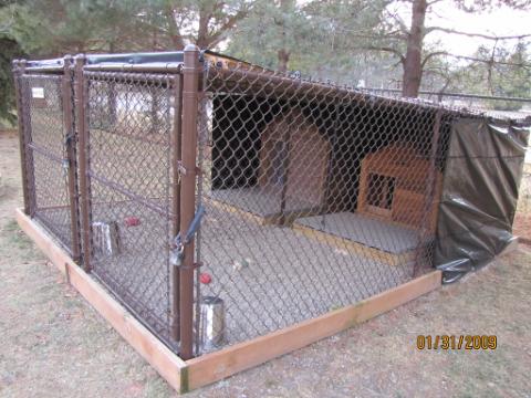 Brown dawgs like to spend time outside. We have two runs for the dogs. In the summer we put up sun shades and in the winter we put up wind screens. They also have insulated dog houses (we put straw in them for cold weather) and access to water. If it is too hot or too cold or storms are expected, they don’t get to spend time in the runs. That makes them unhappy brown dawgs. Some of you may have seen these pictures before, but for those of you who haven’t, here they are again.