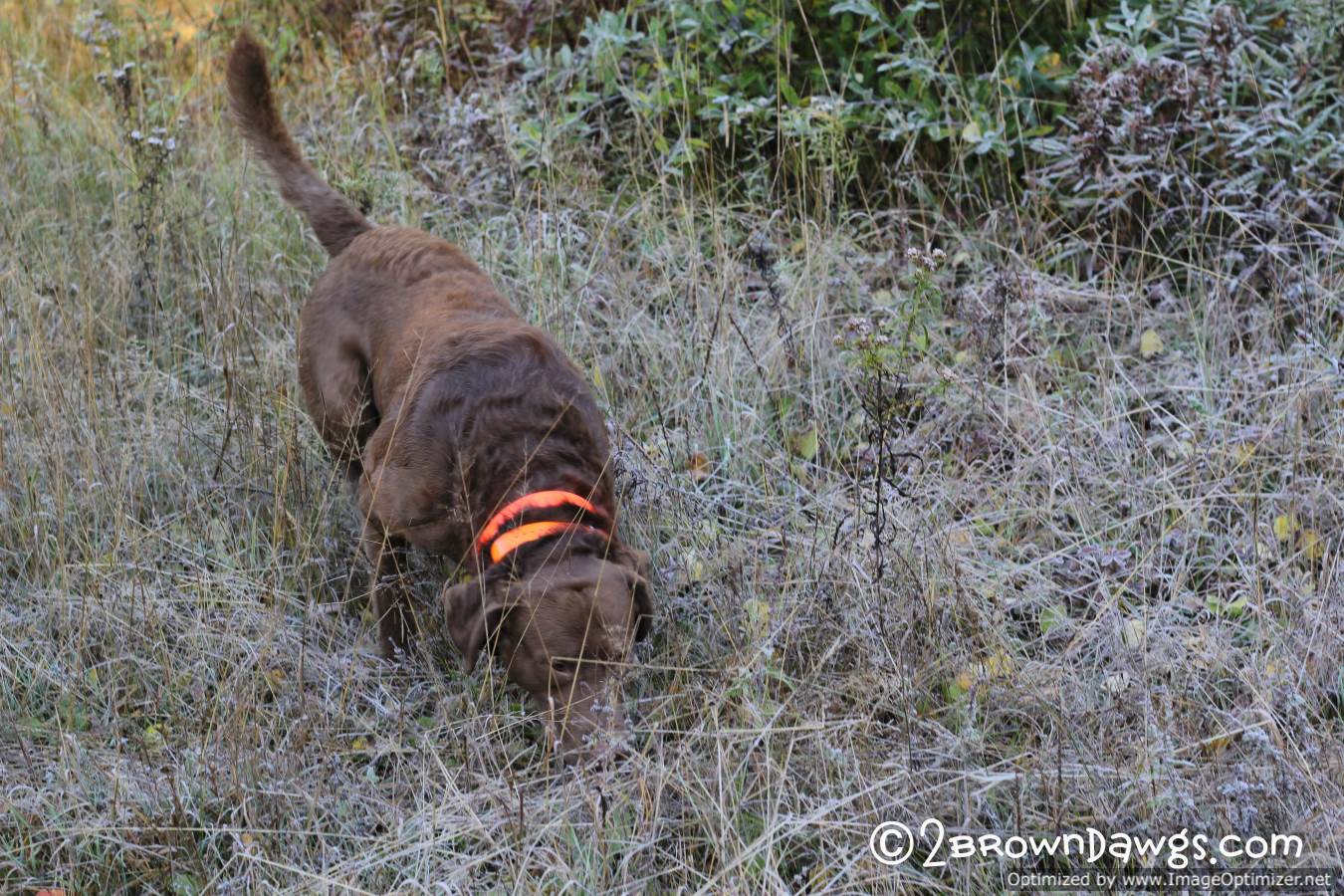 Mom and Bailie are getting lots of exercise with tracking “off road”. Those grass/weed fields can really be challenging to get through, not to mention the unexpected holes and stuff. It looks nice and fall like at least out there. Hopefully the birds will show up next time.