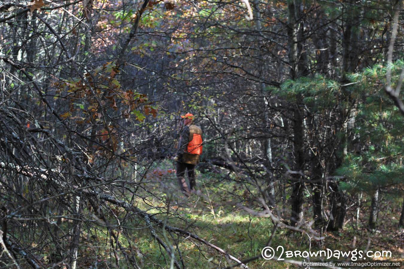 Following the dog through the forest in search of birds is quite a workout for both dog and hunter.ย It is not the same as walking the road.ย You have to get though areas like this: