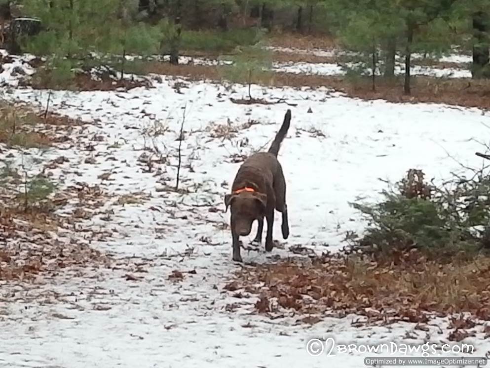 Freighter will be competing in some dog shows this winter. We like to show our dogs in field condition. We condition them by continuing our field training all winter and by getting them out for runs.