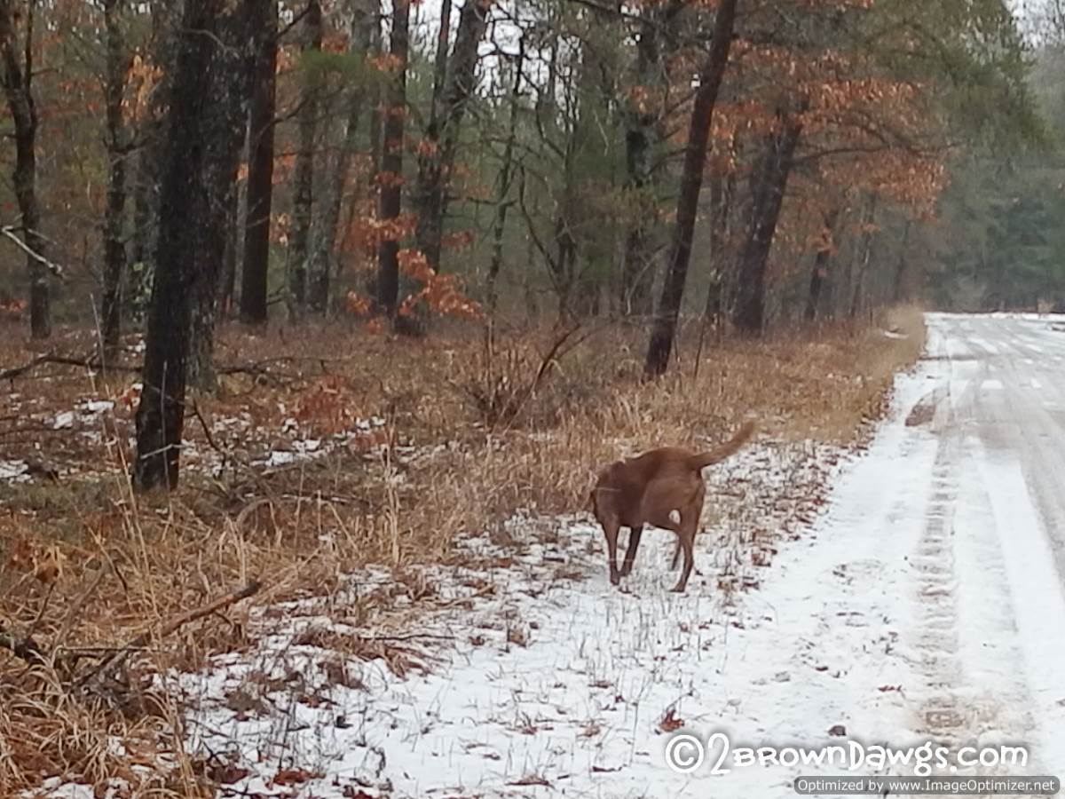 Since we are cold bound, I just might venture into entering the contest. It would be a first for Instagram! Because of the extreme cold, some of the local deer population have moved into town, at midnight Erynn, from a second story window, started her “the space invaders have arrived!” John could see nothing. Insisting they needed to go outside for yard patrol, they raced downstairs and to the back door. Then came the stiff legged, tail rigid, patrol our space.