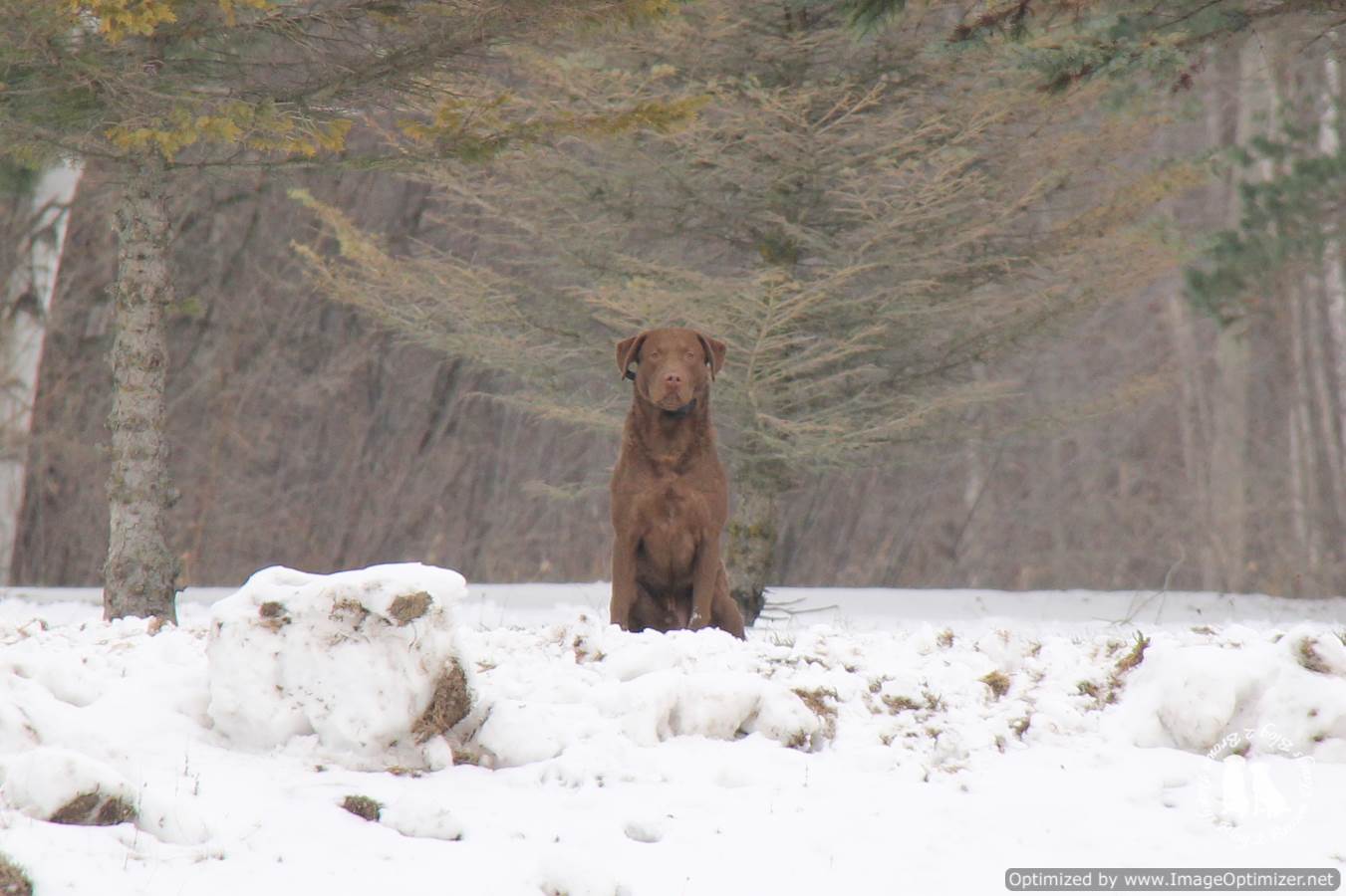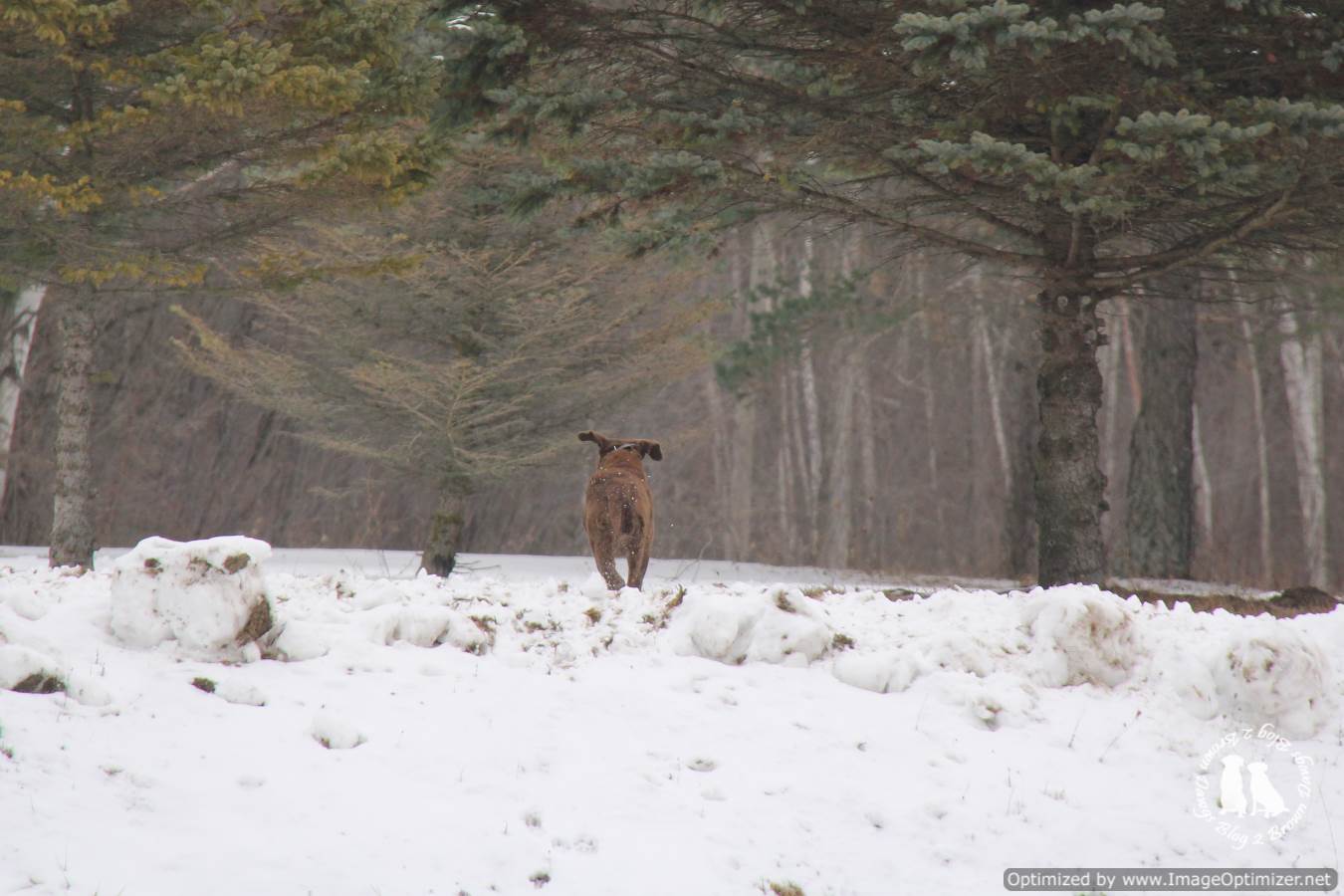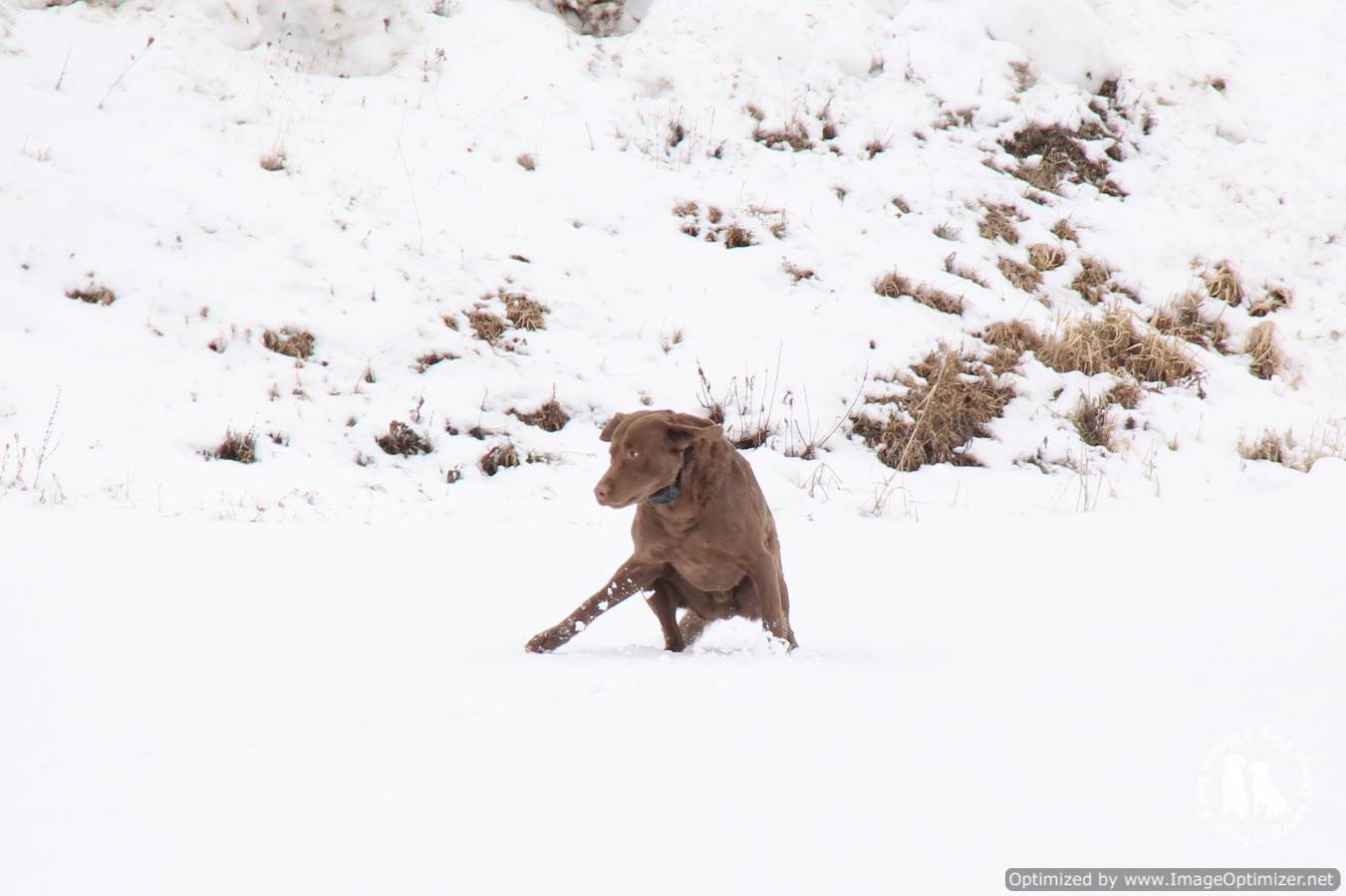 Storm was up first. Her bumper landed in a big pile of snow and was buried. She had to put on a big hunt to come up with it, but she hung in there, used her nose, and literally dug it out. Her blind got a bit messy at the very end, but on the whole we were happy with it.