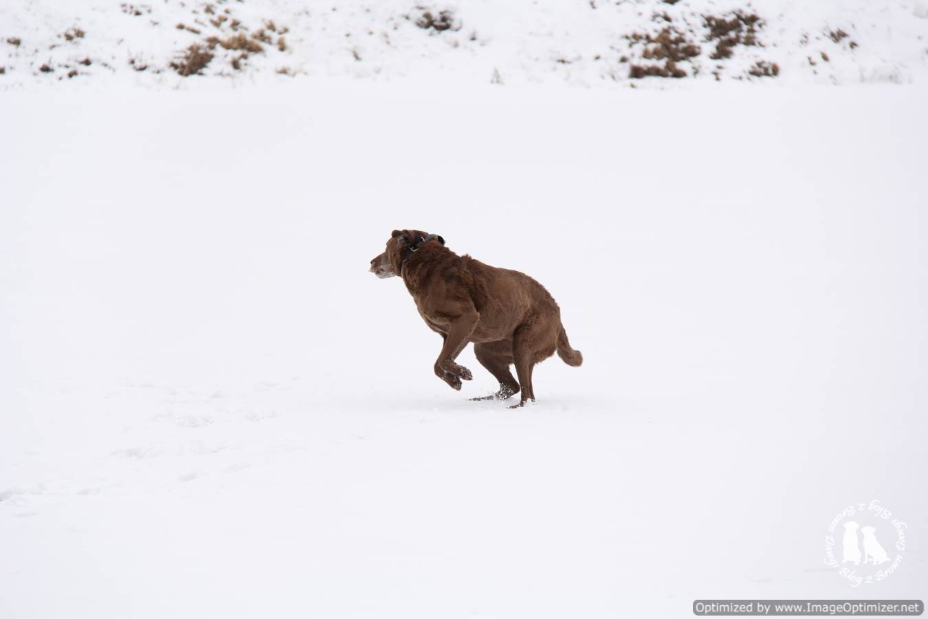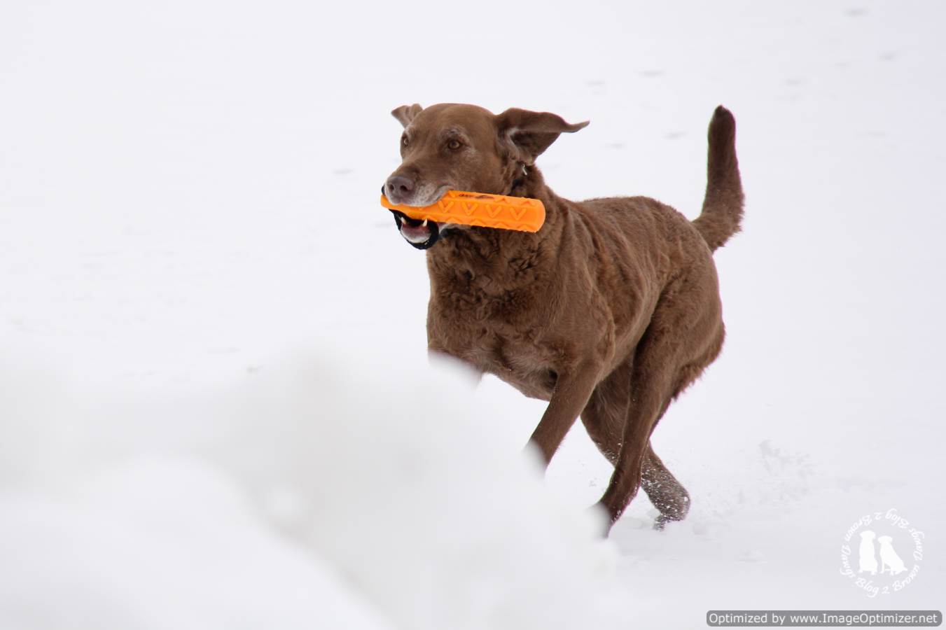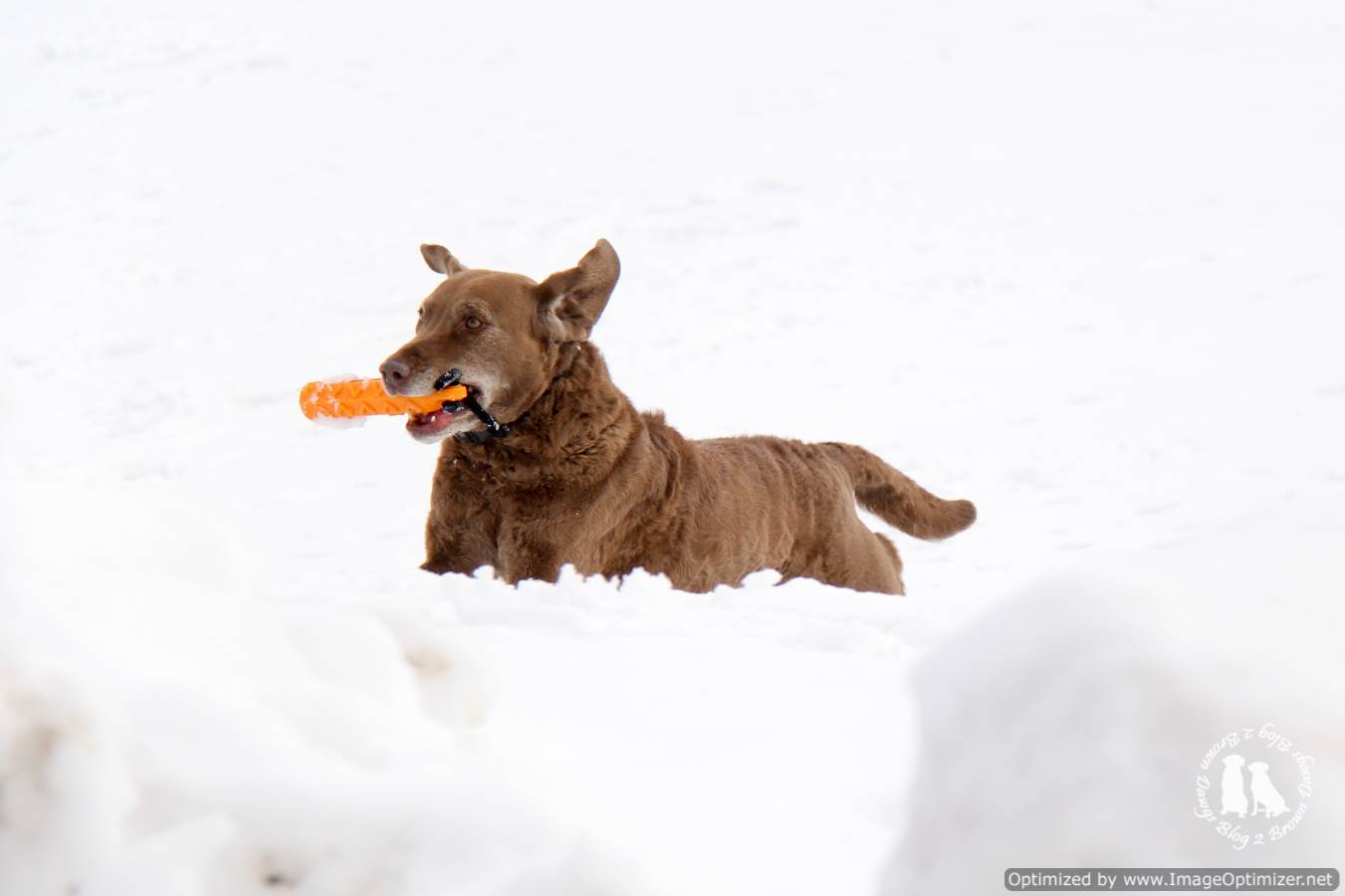 Storm was up first. Her bumper landed in a big pile of snow and was buried. She had to put on a big hunt to come up with it, but she hung in there, used her nose, and literally dug it out. Her blind got a bit messy at the very end, but on the whole we were happy with it.