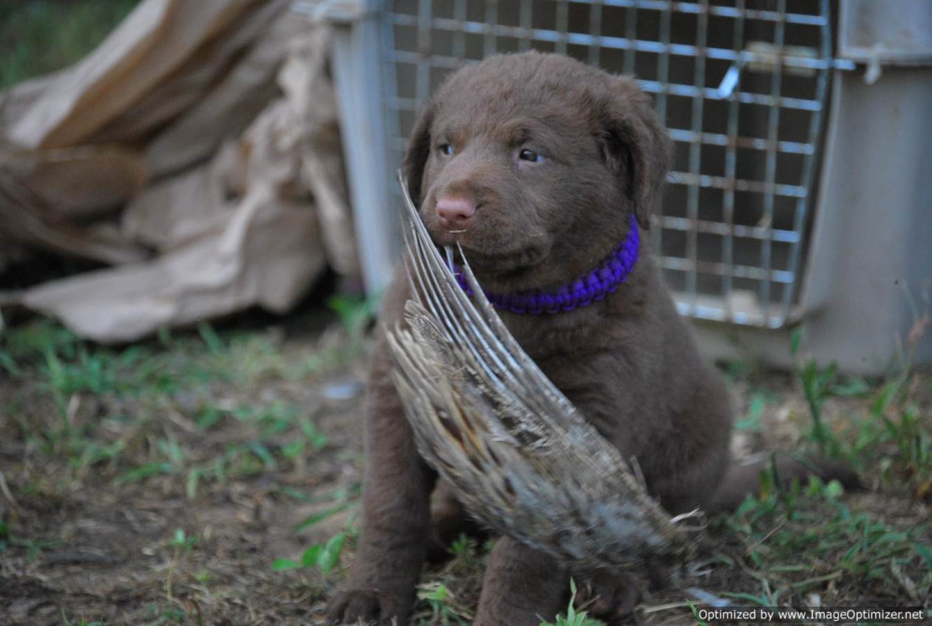 I cannot believe it has been 8 weeks since the Thunder x Glory pups were born. They will start heading home today. Glory and Thunder sure made some adorable pups. It has been a joy watching them as they grow thanks to all of the pictures and posts their breeder JoAnn of Sand Spring Chesapeakes has shared. JoAnn has done an excellent job of preparing the pups for their lives and their new homes. They have had wings and birds and even been swimming. What more could pups that aspire to become hunting dawgs ask for?