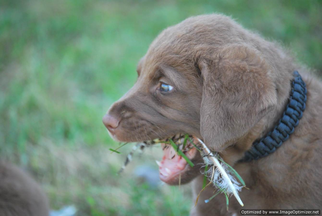 Feathers and grass, a Chessie combo. Personality plus. Happy lives to the pups and their new owners! Everyone have a safe Labor Day, may there be swims for all!