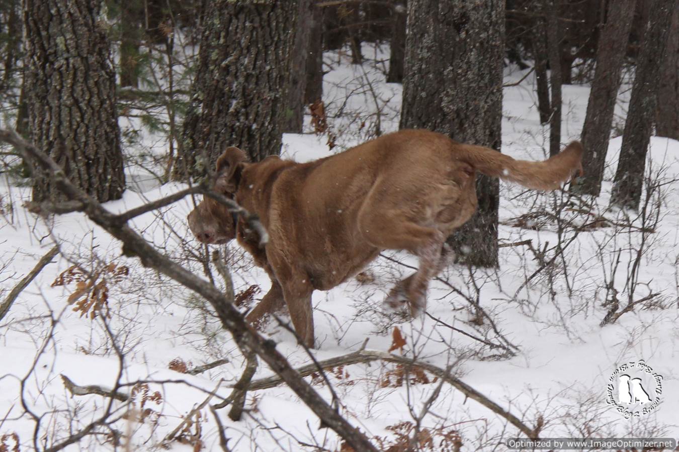 Getting out for exercise in the winter can be a challenge. The days are short and sometimes the weather does not cooperate. As long as the brown dawgs have a forest or some snow piles handy they can get a great winter workout.